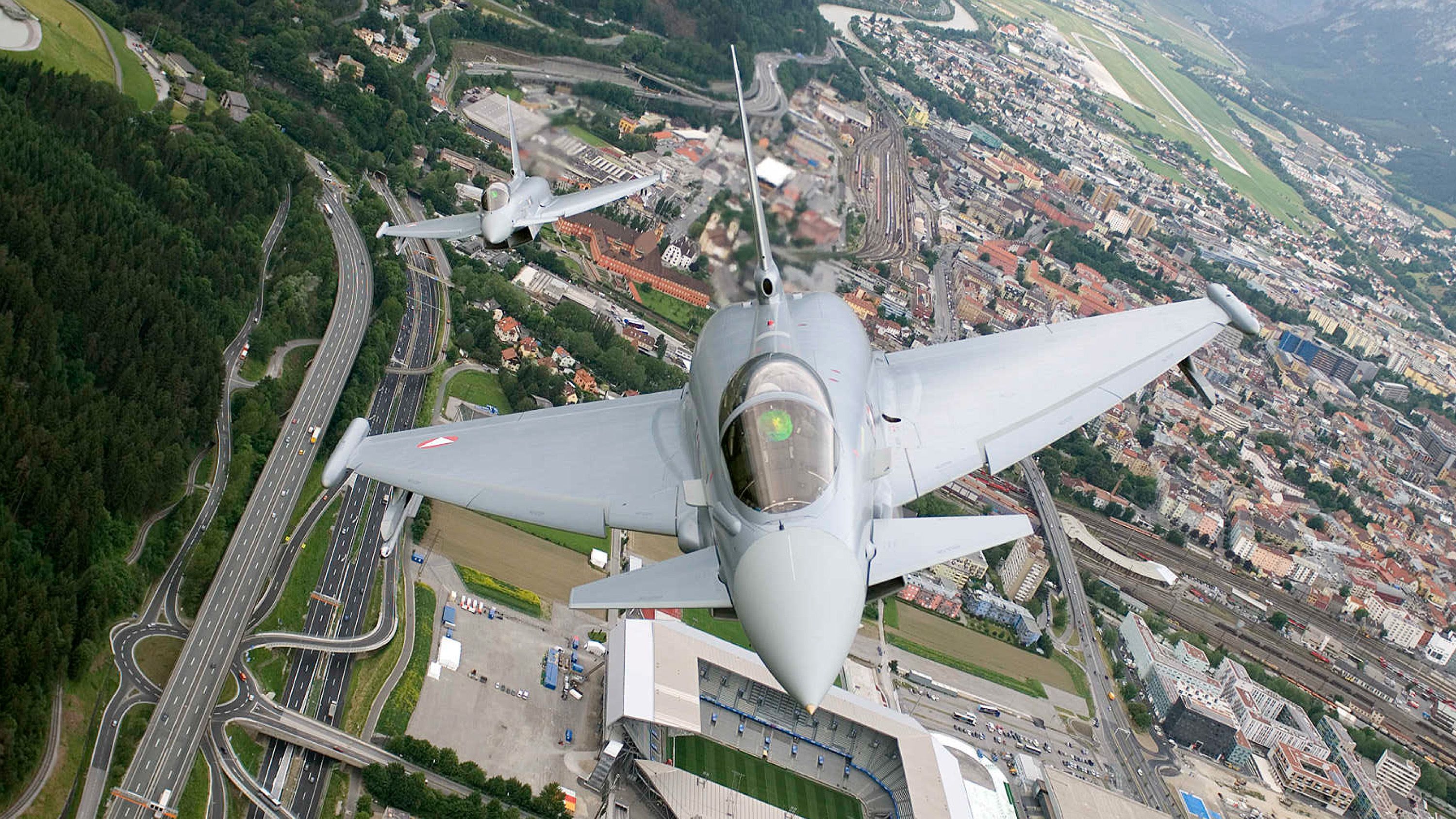 Der Eurofighter wurde in Österreich als Nachfolger des Abfangjägers Saab 35OE "Draken" angeschafft und ist ein Kampfflugzeug der vierten Generation. Der "Typhoon" ist mit modernen Navigations- und Steuerungssystemen ausgestattet, die für eine gute Manövrierfähigkeit bei geringer Geschwindigkeit und mithilfe von Flugkontrollcomputern für eine hohe Wendigkeit sorgen. Das Flugzeug wird neben Österreich von den Staaten Deutschland, Großbritannien, Italien, Spanien, Saudi-Arabien, Katar, Kuwait und dem Oman eingesetzt.