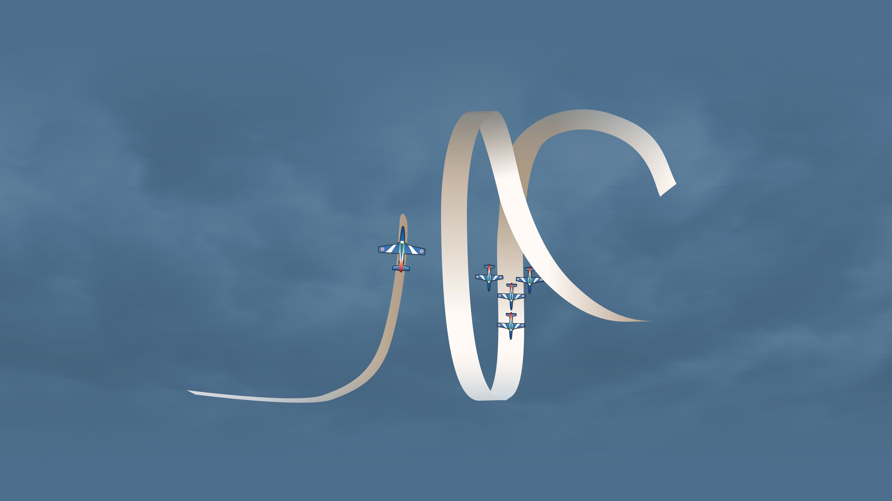 Vier Flugzeuge formen mit einem Looping das "Auge".