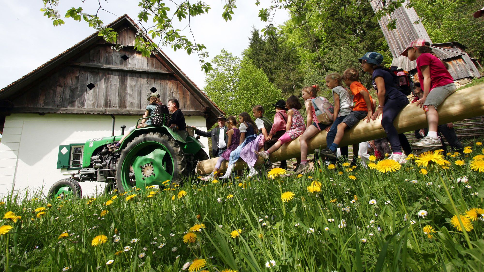 Das schaut ganz nach Gaude aus, die die auf dem Maibaum hockenden Kinder da haben, und natürlich suggeriert dieses Foto – aufgenommen in Stübing – ein ländlich-heiles Idyll, das man jetzt naserümpfend als Kitsch und billigen Eskapismus abtun kann. Muss man aber nicht. Man kann es auch so sehen: Einfach schön ist sie, die mit Löwenzahn übersäte Blumenwiese, und bald wird der Maibaum – prächtig geschmückt mit Bändern, Kränzen und Schnitzereien – stolz in den hoffentlich frühlingshaften Himmel spitzeln.