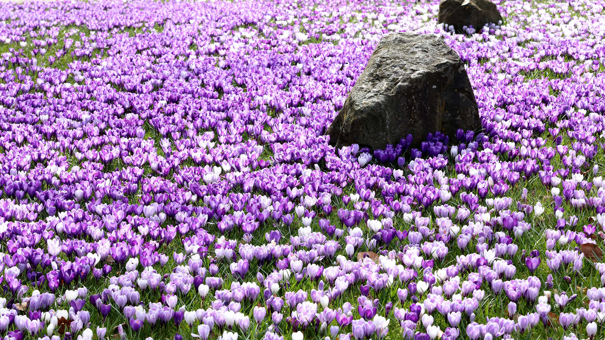 Dieses Foto verleitet naturgemäß zu pseudo-poetischen Höhenflügen. Von wegen: Die Steine, Synonym für Härte, Unnachgiebigkeit und einen Stoizismus der brutalen Art, werden umgeben, ja regelrecht umzingelt von einer (friedlichen) Heerschar unzähliger Krokusse; von lieblichen Blumen also, dem Symbol für Schönheit, Zartheit und Liebe natürlich.