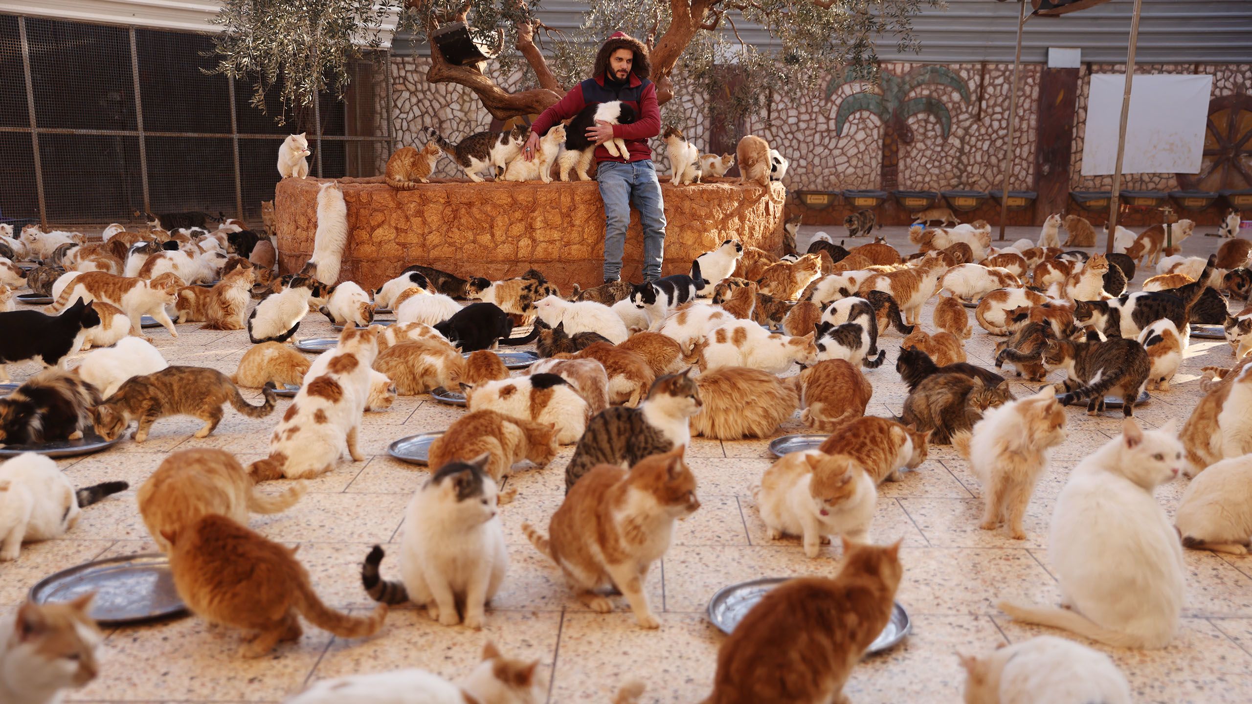 Nicht so leicht ist die Lage tatsächlich für die Katzen auf dem Foto. Wobei sie das Gröbste hinter sich haben dürften. In Idlib, im Norden Syriens, kümmert sich ein Tierasyl um Katzen, die wegen Kriegshandlungen oder der jüngsten Erdbeben zu leiden hatten. "Ernesto’s Sanctuary" beherbergt etwa 2000 Katzen und – laut Eigenauskunft – in einer Zweigstelle auch noch Hunde, Pferde, Ziegen, Hühner, Esel, Gänse, Affen, Pfaue, Tauben und Enten.