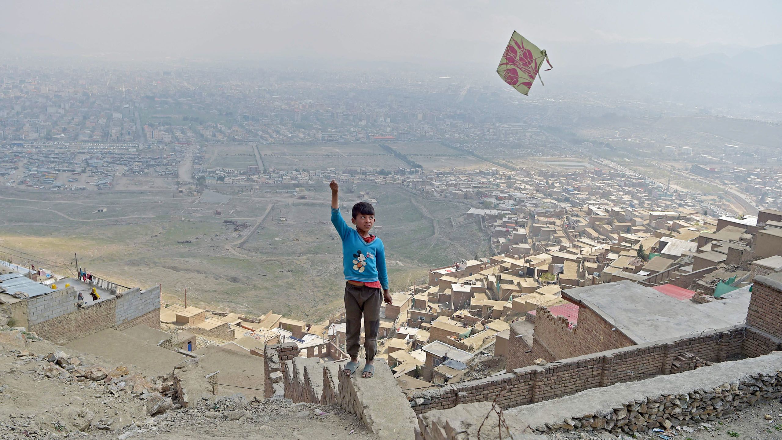 Der Drachenjunge, der seinem Fluggerät etwas skeptisch nachblickt, steht auf einem Hügel, im Hintergrund sehen wir Kabul. Spätestens seit dem Roman "Drachenläufer" von Khaled Hosseini wissen wir, dass das Drachensteigen in Afghanistan Nationalsport ist, unbeschwertes Freizeitvergnügen für Kinder und Erwachsene und kurzzeitiger Eskapismus aus Elend, Angst, Not und Vernichtung. Ziel ist es nicht, wie bei uns, die fragilen Papierkonstrukte möglichst ruhig und lang dahinschweben zu lassen, sondern durch geschicktes Manövrieren des eigenen Drachens die Schnur des Gegners zu durchtrennen und seine Konstruktion zum Absturz zu bringen.