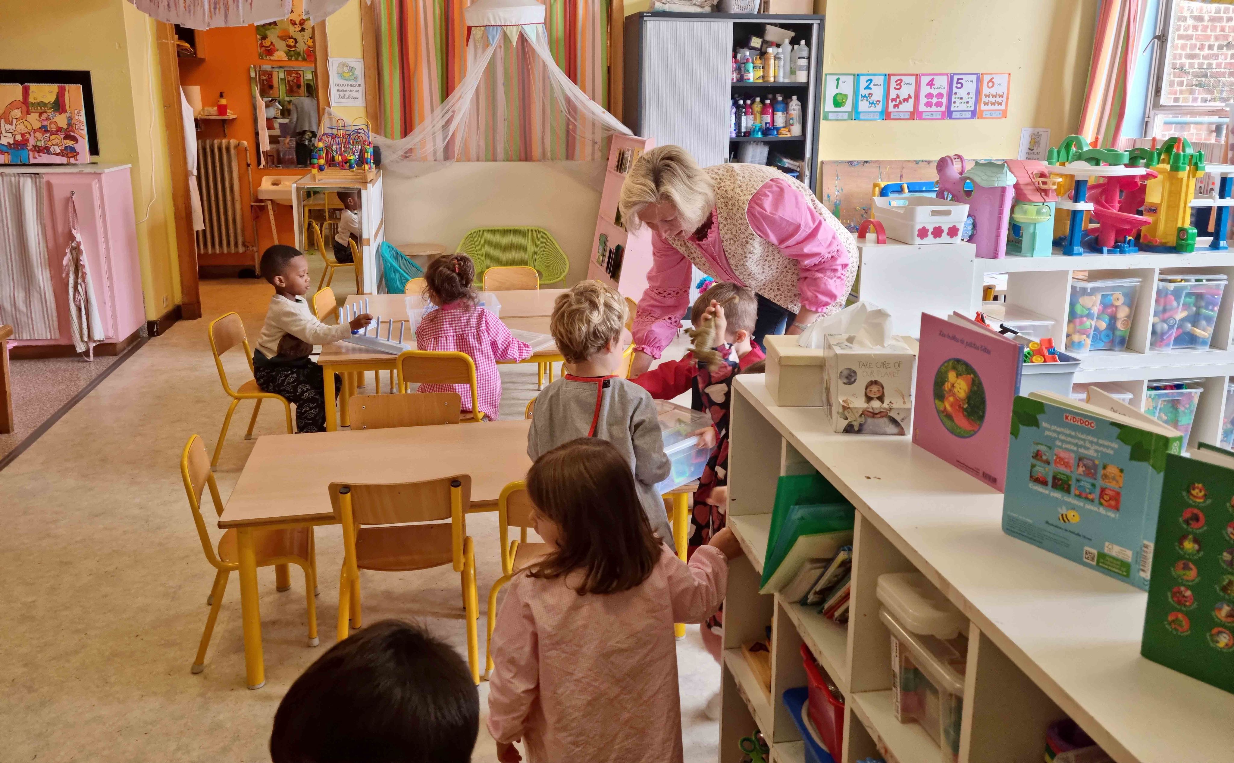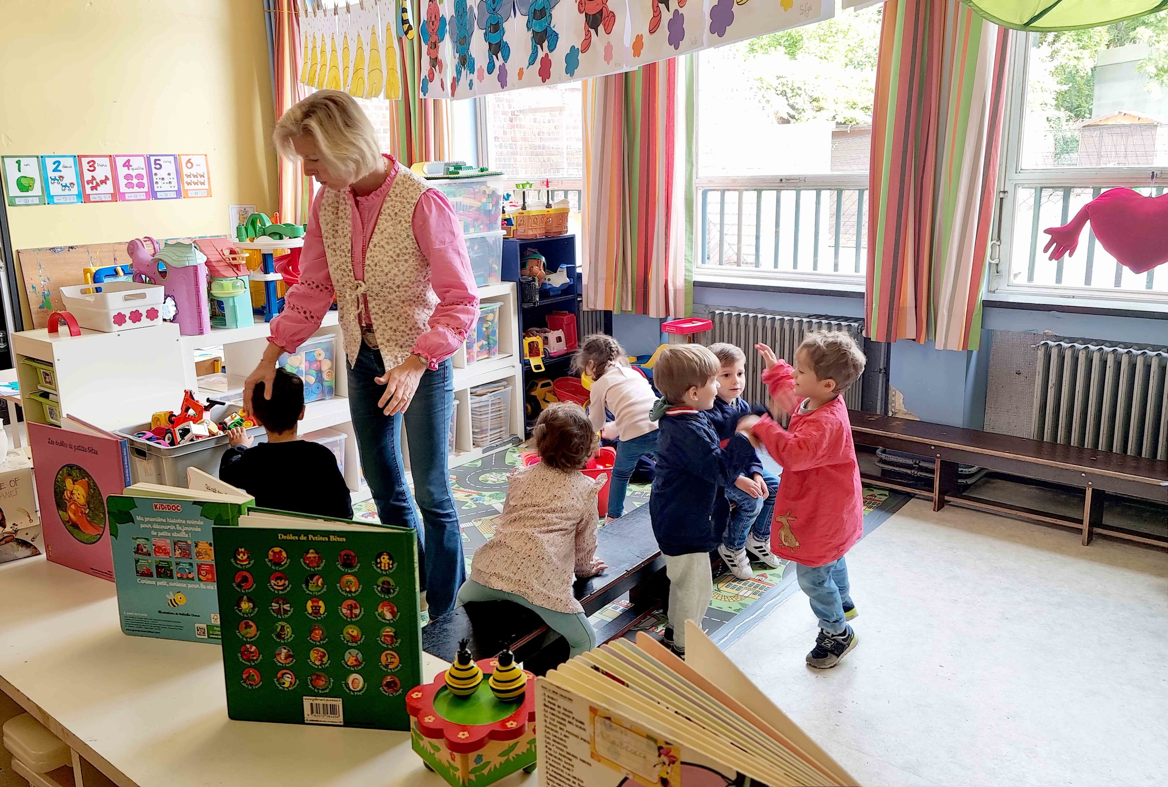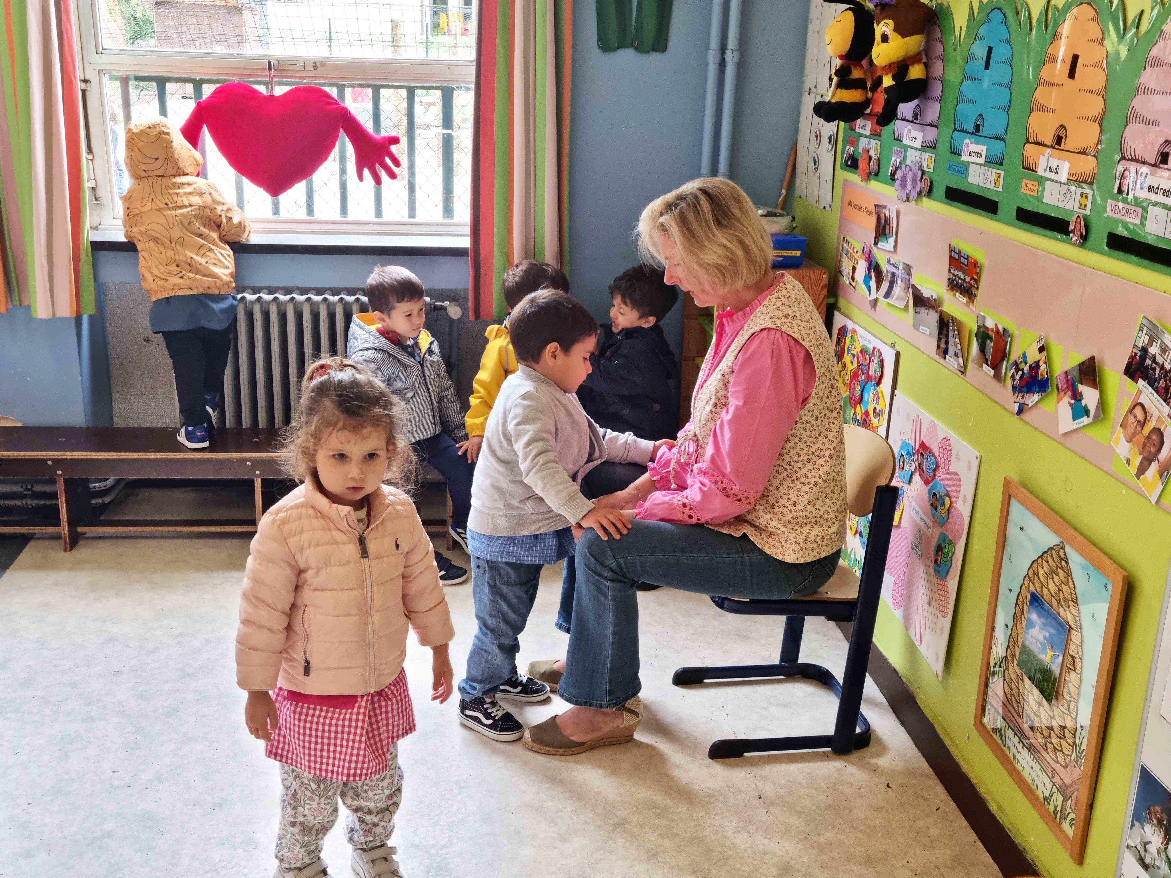 Eves Nase läuft, die Kleine steht aus dem Sitzkreis auf, nimmt sich ein Taschentuch, wischt sich damit über das Gesicht, geht zum Mistkübel und wirft es hinein. „Die Kinder werden schnell selbstständig“, sagt Madame Barbara, die mit Nachnamen Lantez heißt und seit 15 Jahren unterrichtet. In der École maternelle de Calevoet im Viertel Uccle bringt sie den Zwei- bis Dreijährigen Formen bei, Farben, erste Zahlen und wie man einen Stift richtig hält, seinen Namen schreibt und zusammenarbeitet.