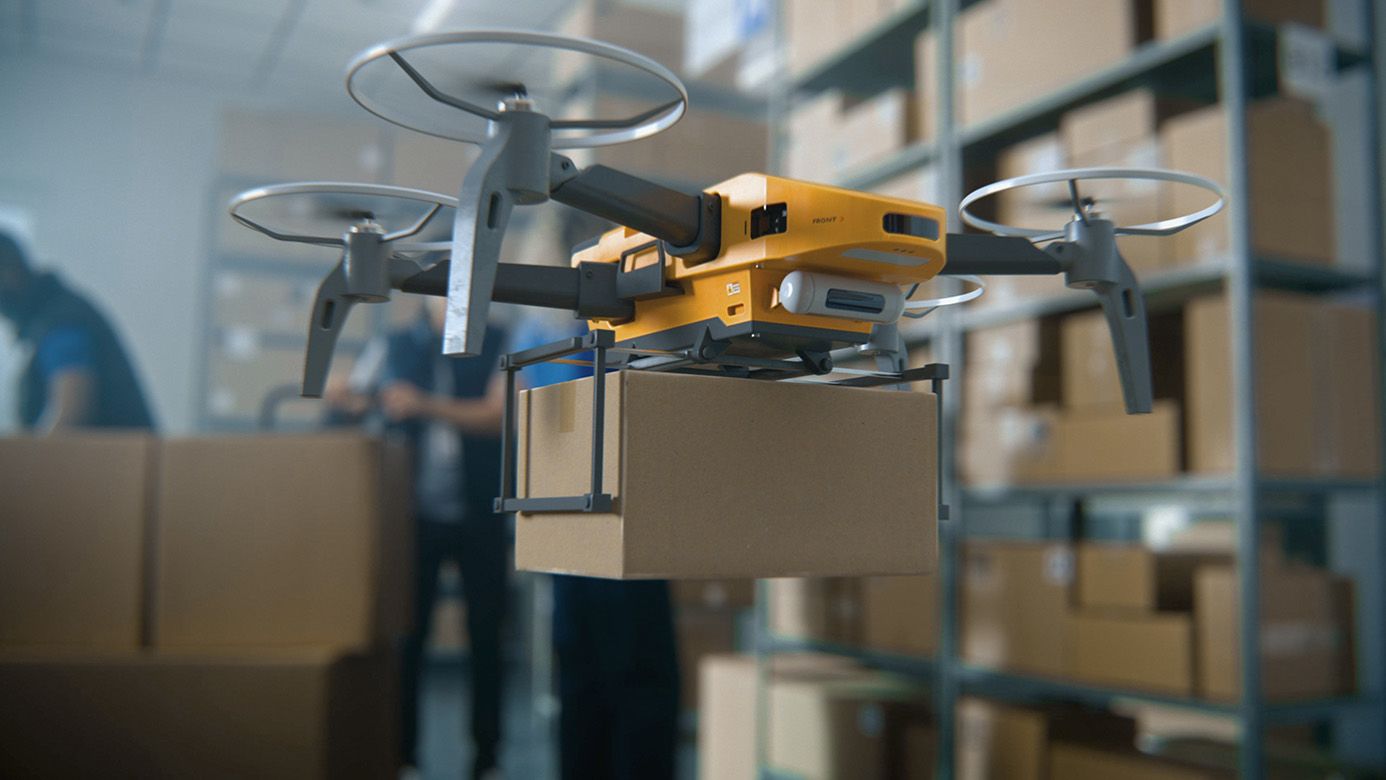 Die Zustellung von Paketen mit Drohnen wird von vielen Firmen und Forschern vorangetrieben. Zu den Wegbereitern gehört u. a. Amazon mit dem „Prime Air“ Projekt.
