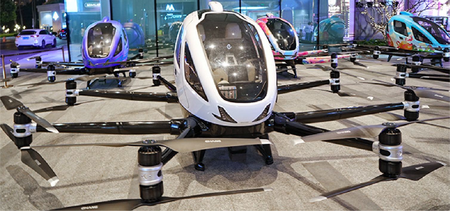 Taxidrohnen sind noch nicht im regulären Einsatz. Es gibt jedoch Prototypen, u. a. von Volocopter oder dem mittlerweile pausierten „CityAirbus“.