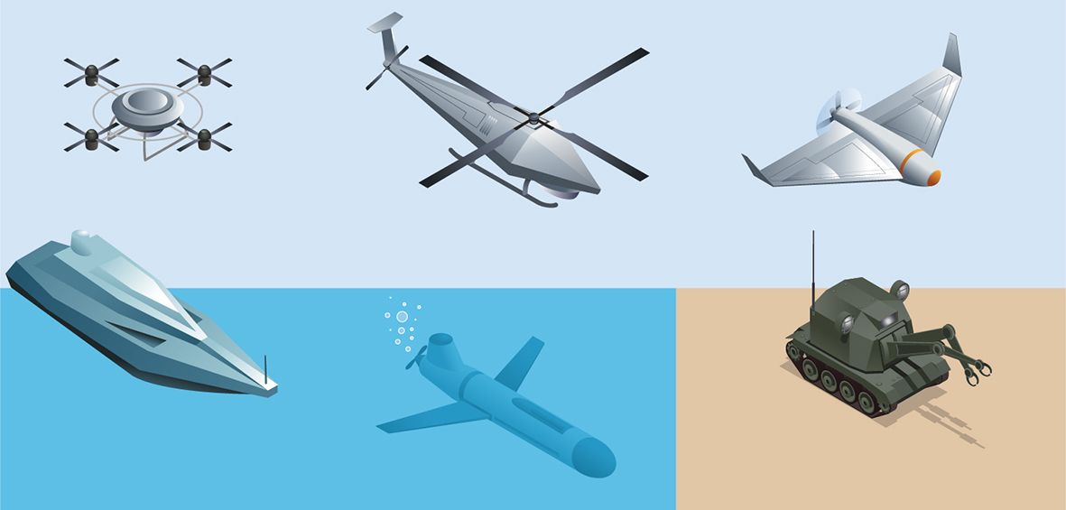 Mittlerweile wurde das Drohnenkonzept auch auf andere Domänen ausgedehnt. So bezeichnet man unbemannte, ferngesteuerte oder autonome Fahrzeuge, die auf dem Land, im Wasser oder unter Wasser operieren, auch als Drohnen – sogenannte Land-, Wasser- oder Unterwasserdrohnen.