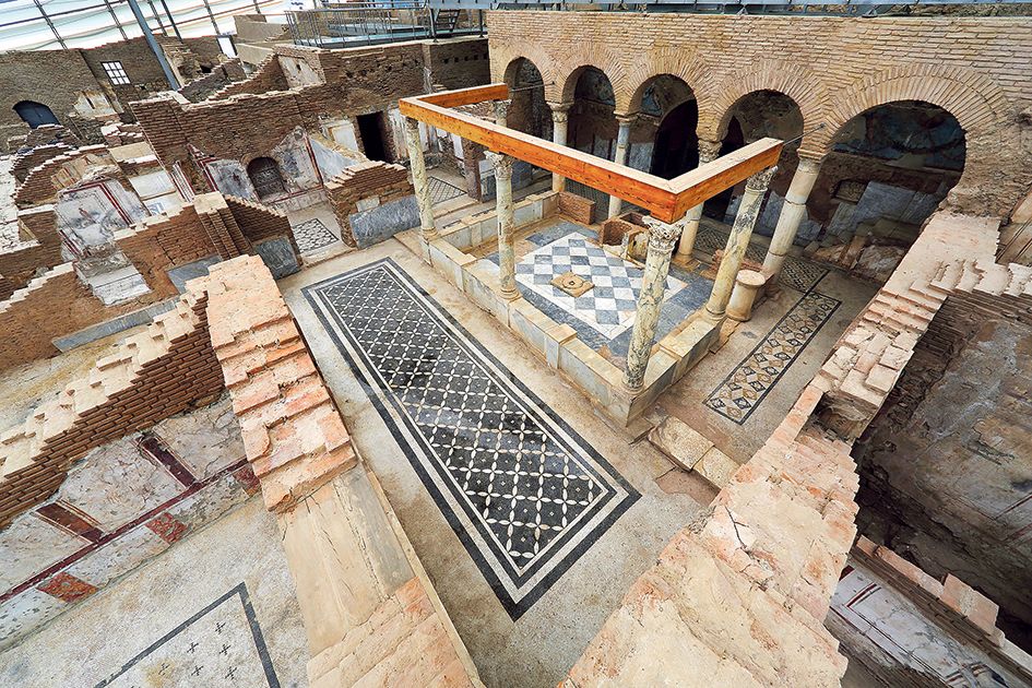 Ein riesiges luxuriöses Hanghaus mit Dutzenden Räumen wird überdacht und ist heute einer der Höhepunkte auf dem Gelände.