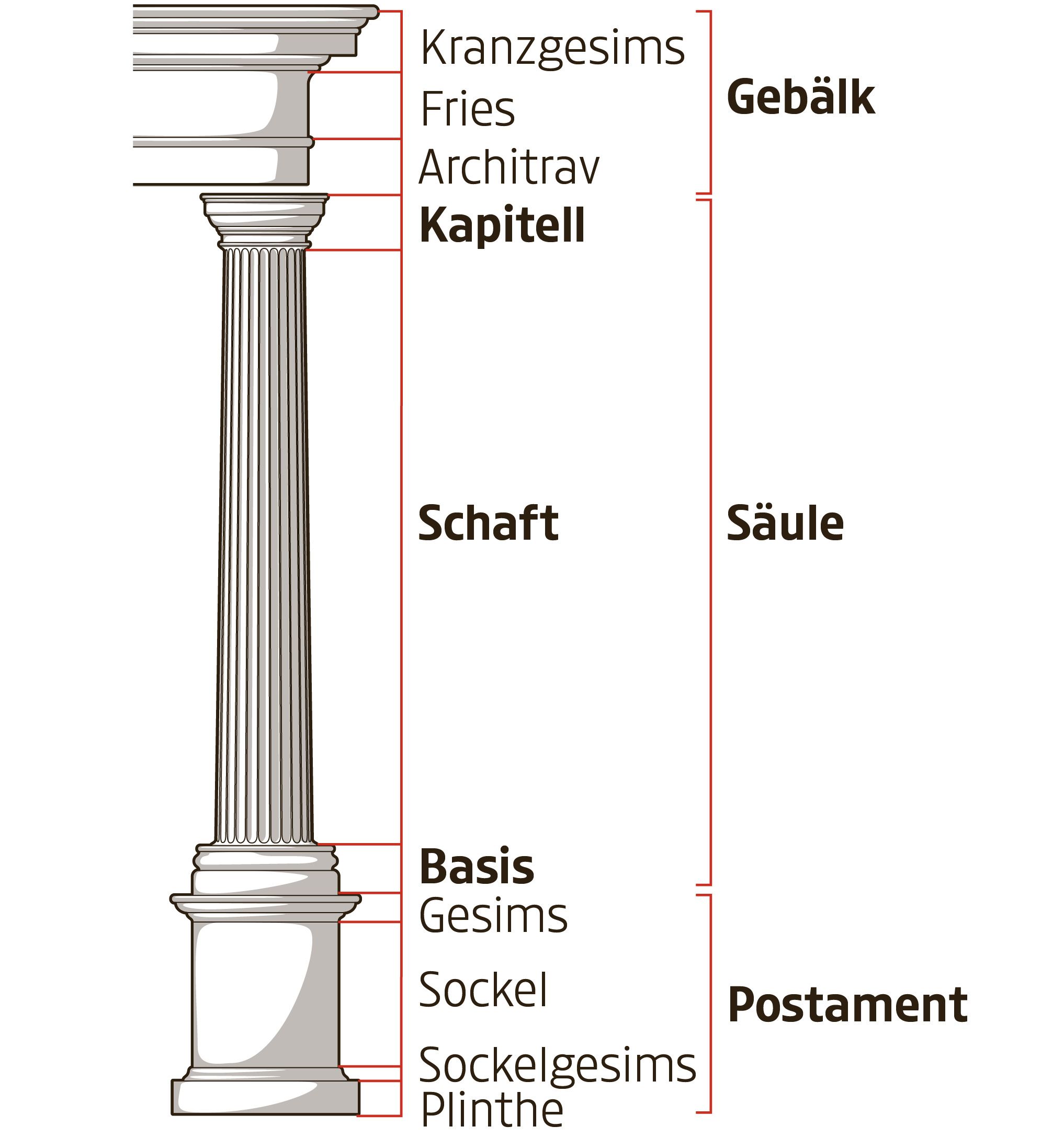 In Griechenland entwickelten sich verschiedene Formen der Säulengestaltung. Auch die Römer nutzen diese Formen bzw. wandelten die Muster ab.