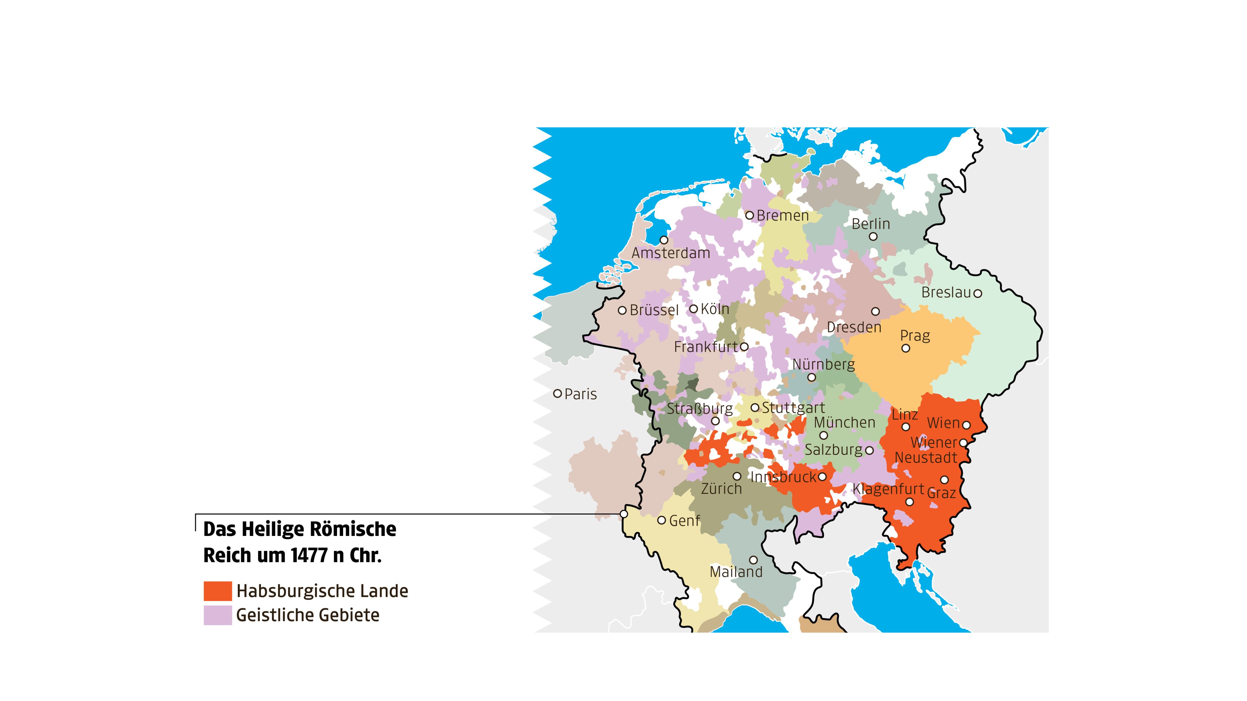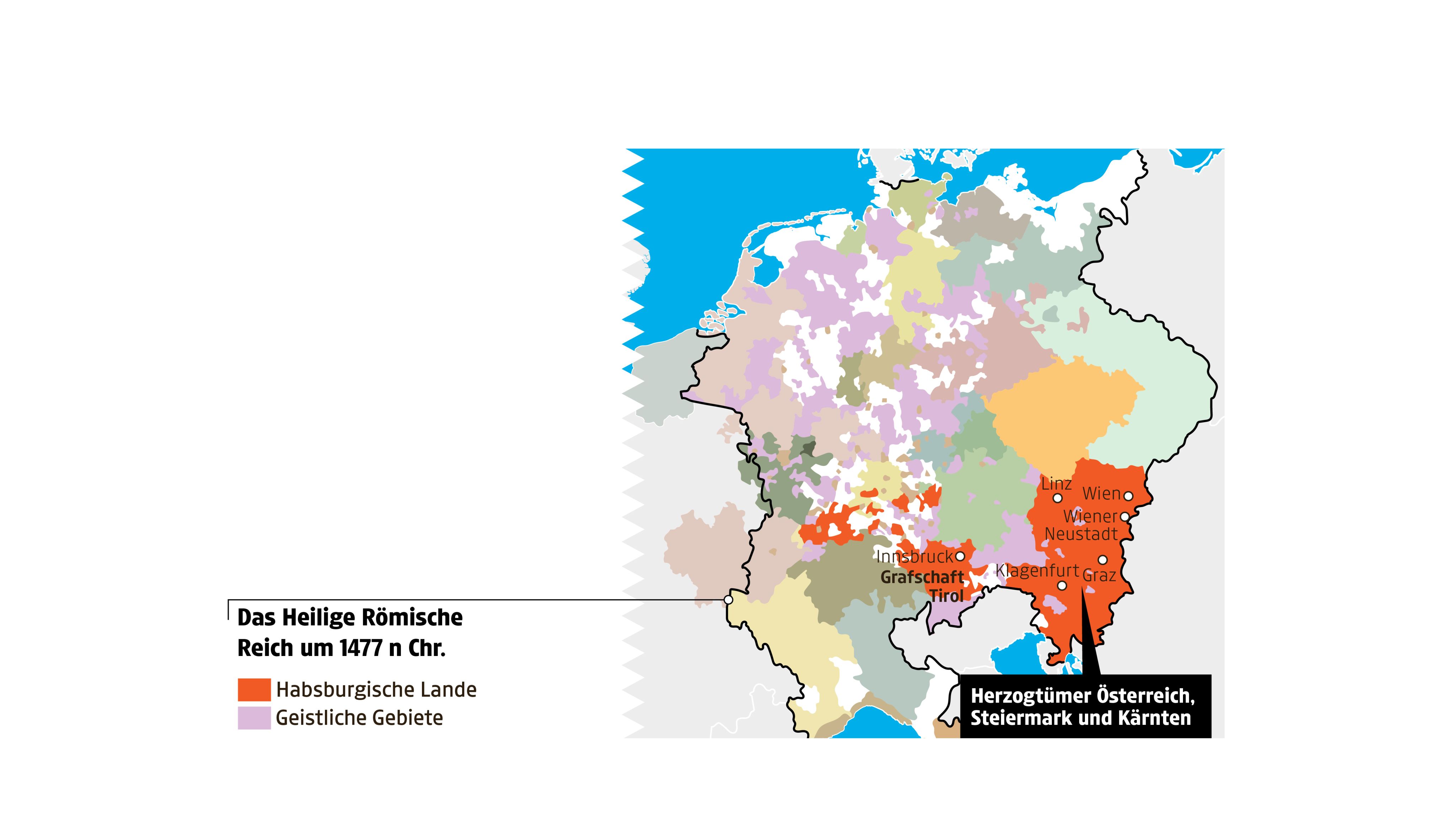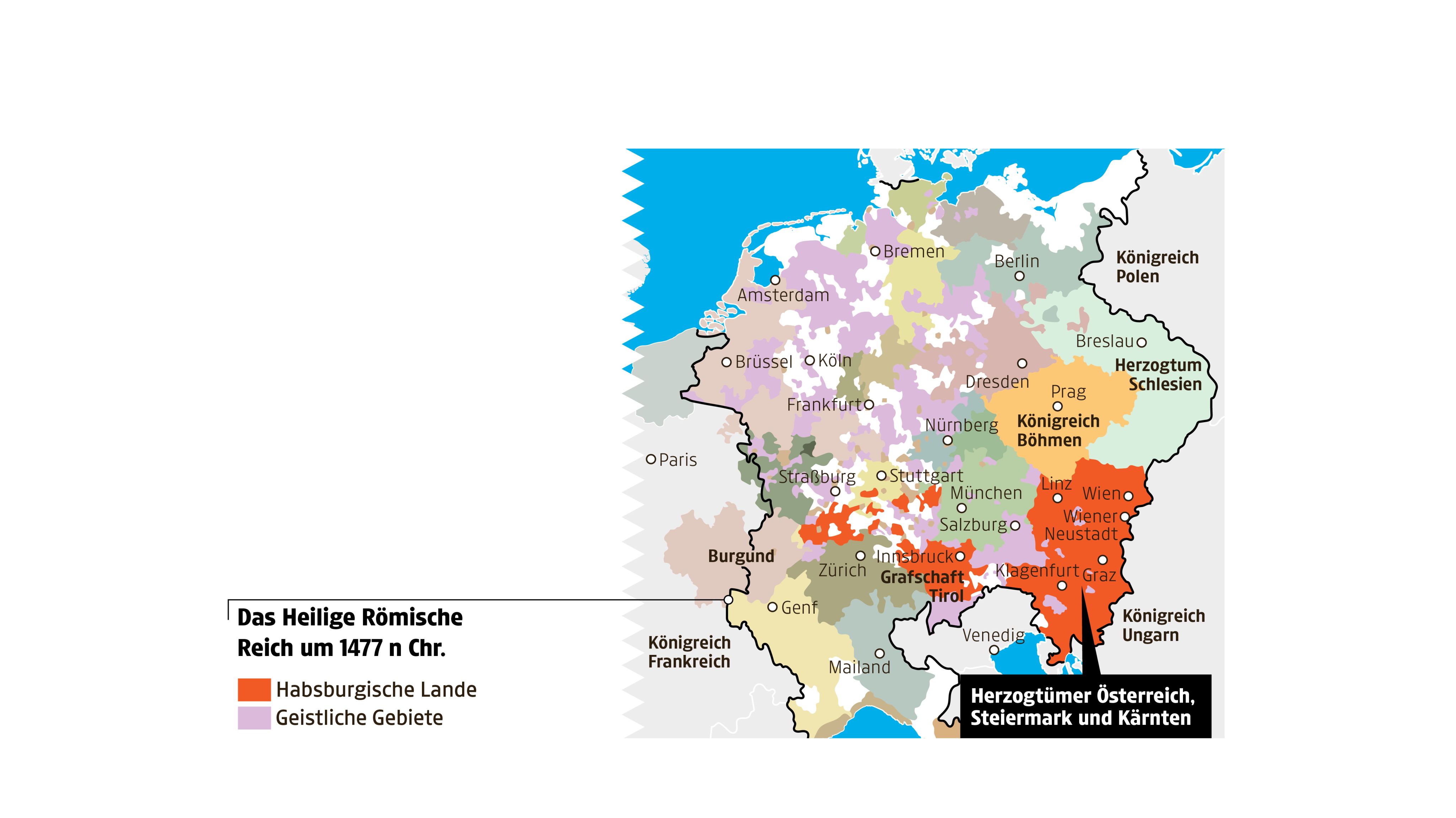 INFOGRAFIK. Friedrich III. (1415–1493) herrschte 53 Jahre lang und war der am längsten regierende Kaiser des Heiligen Römischen Reichs. Die meiste Zeit seiner Herrschaft verbrachte er in Graz. Was blieb von diesem Kaiserreich?