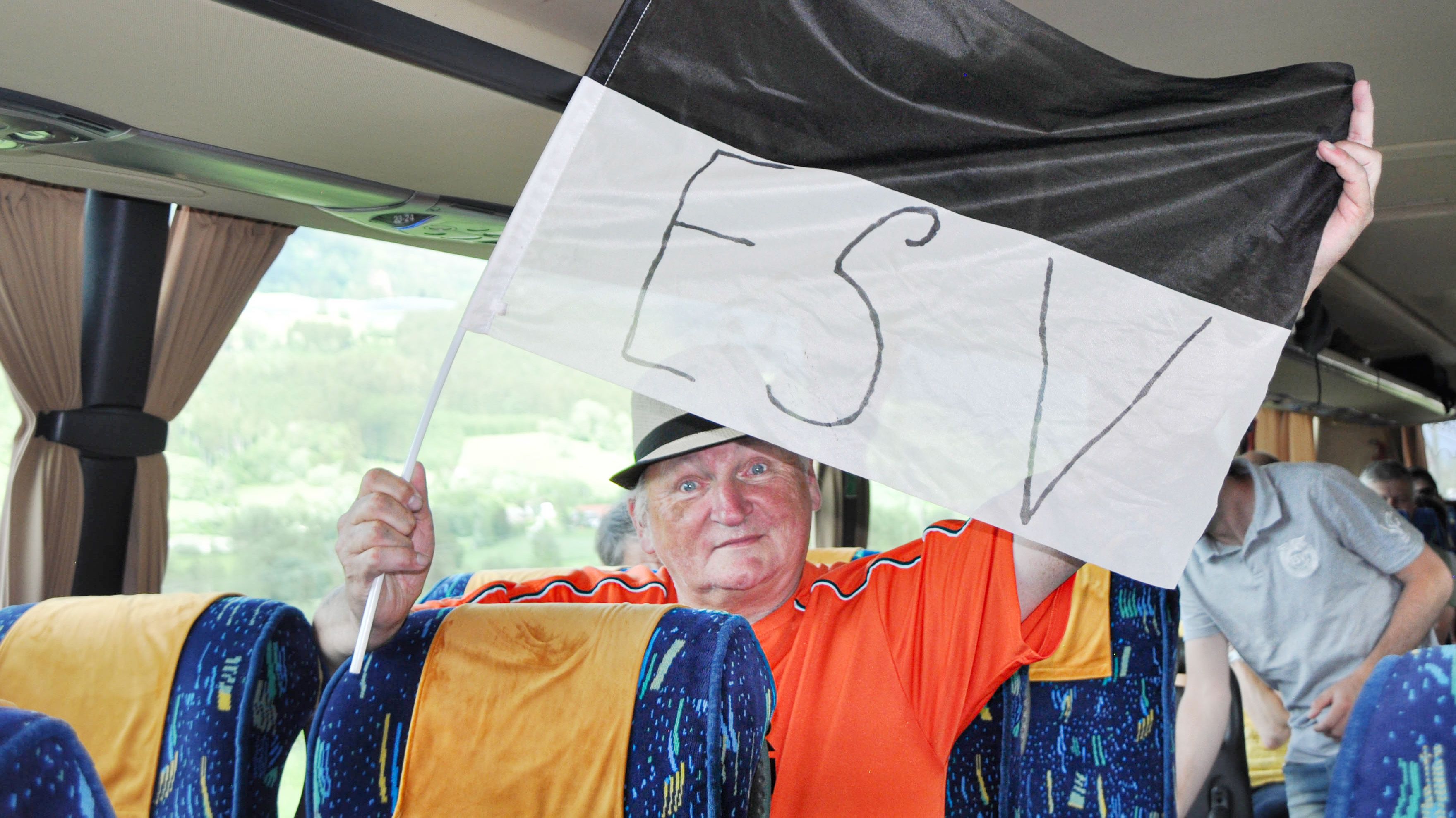 Auch Edelfan Klausi, der kein ESV-Spiel verpasst, bekommt lautstarke Sprechchöre.