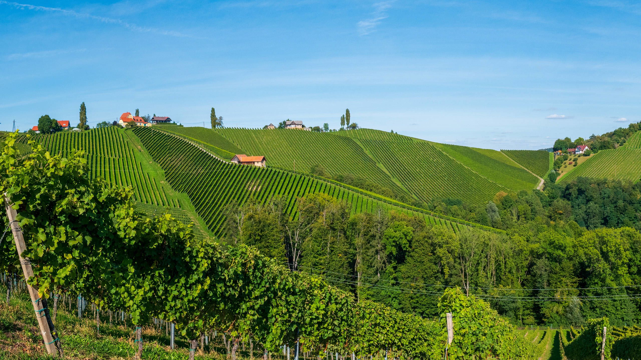 Auf fünf Hektar Weingartenfläche wachsen bei Sandra und Karl Pronegg Welschriesling, Weißburgunder und weitere Rebsorten mitten in der Südsteiermark mit herrlichem Ausblick auf Leutschach. Hier befindet sich die israelische Kulturbotschaft, in der der israelische Künstler Dan Robert Lahiani arbeiten wird.