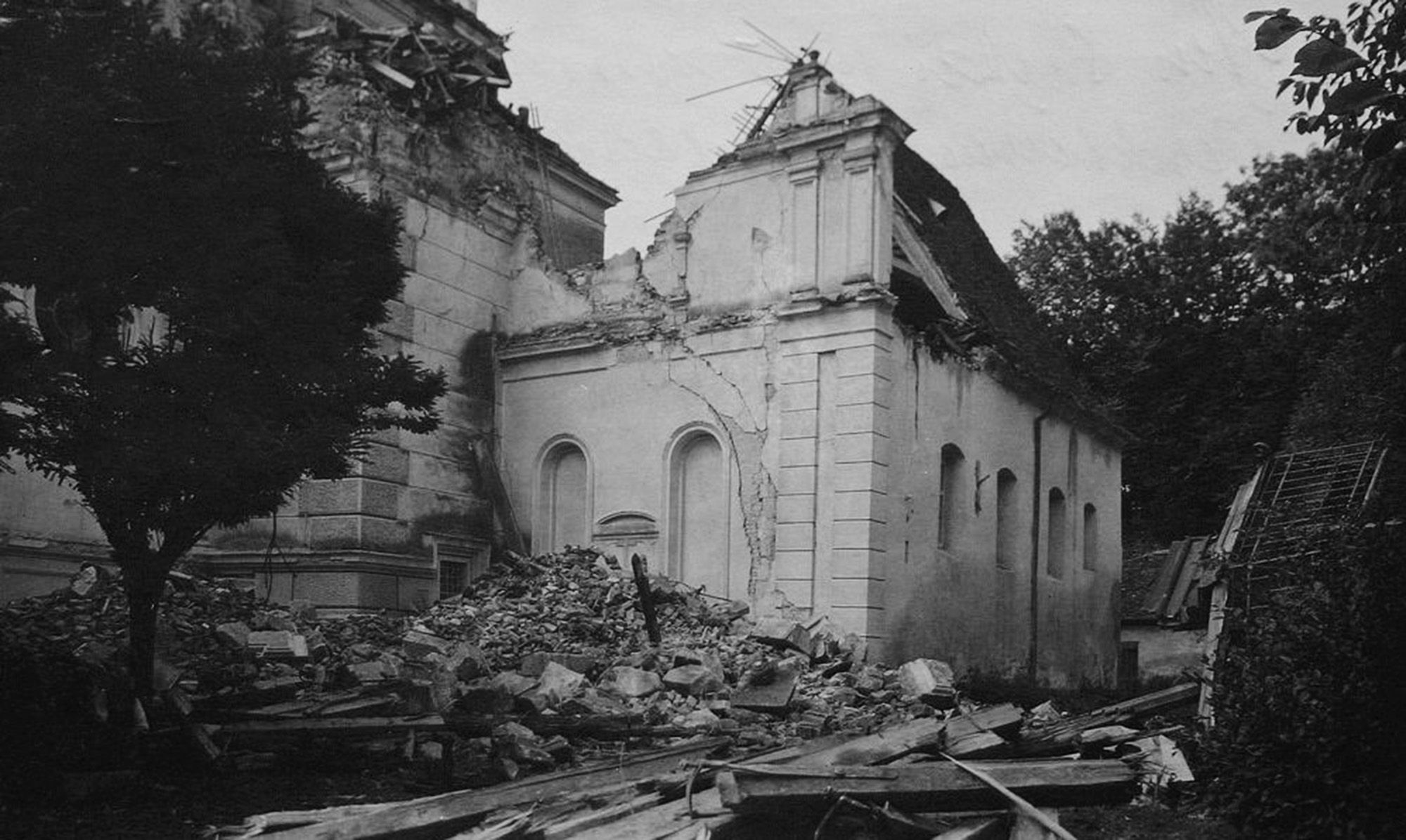 Die demolierte Feldbacher Kirche zum Kriegsende