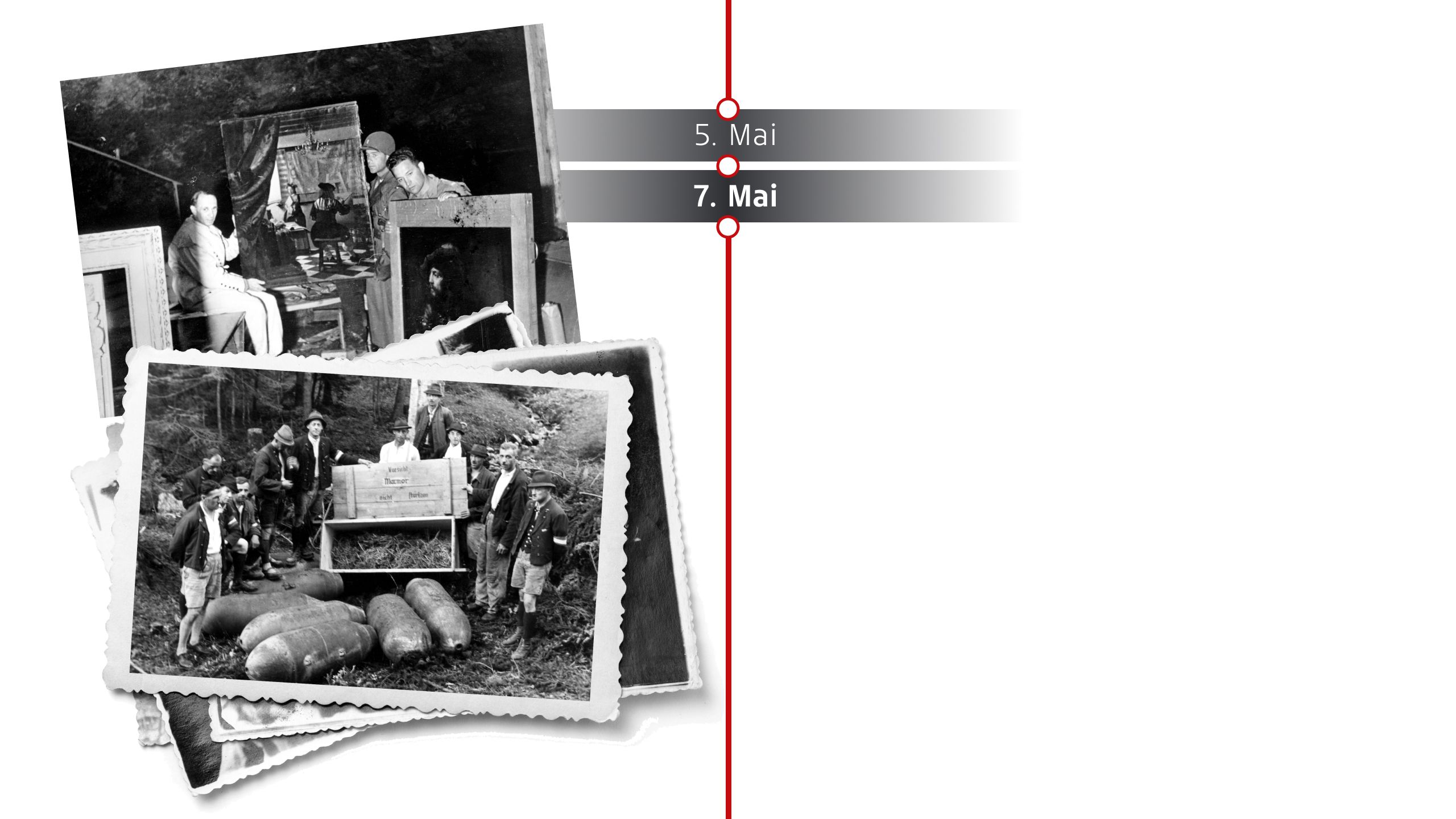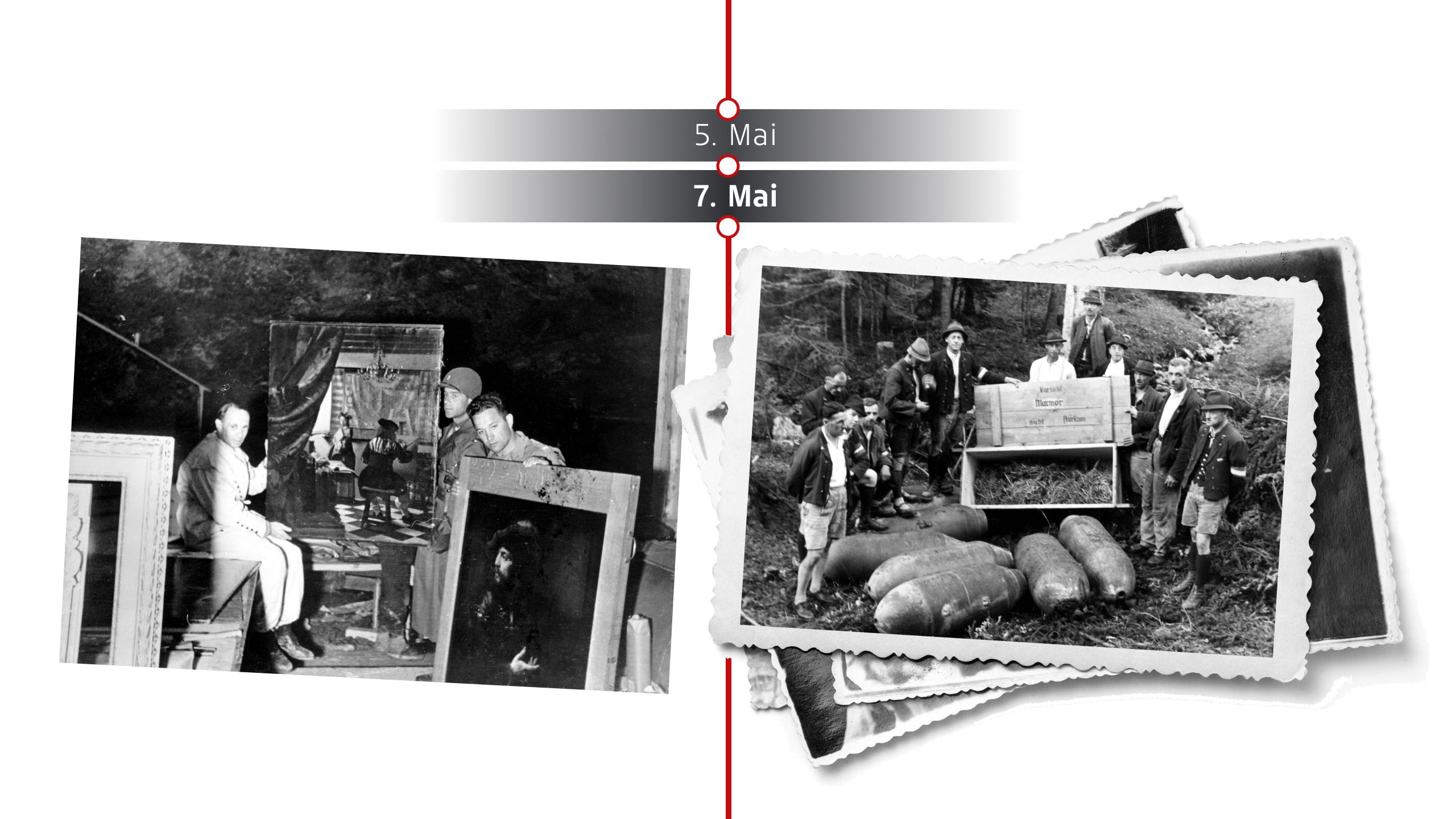Im Salzbergwerk Altaussee (Steiermark) lagerten gegen Kriegsende über 6500 Kunstwerke, die von den Nationalsozialisten aus ganz Europa geraubt oder beschlagnahmt worden waren – darunter Werke von Michelangelo, Vermeer, Rembrandt und Brueghel. Das Bergwerk war eines der größten Depots für NS-Kunstraub.