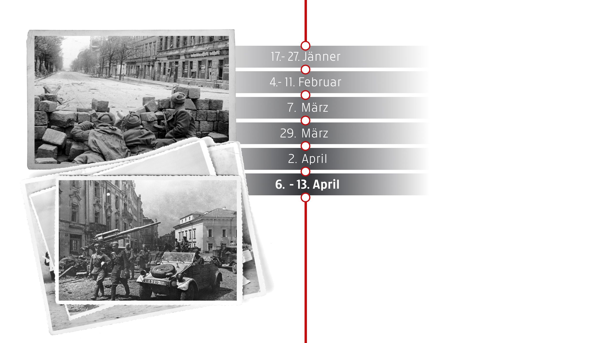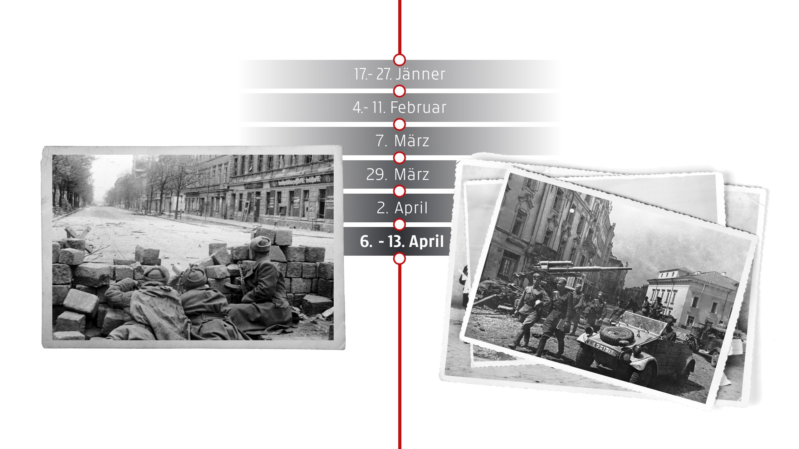 Die Rote Armee beginnt am 6. April die Offensive auf Wien. Deutsche Truppen und SS-Einheiten leisten erbitterten Widerstand und errichten Verteidigungsstellungen.