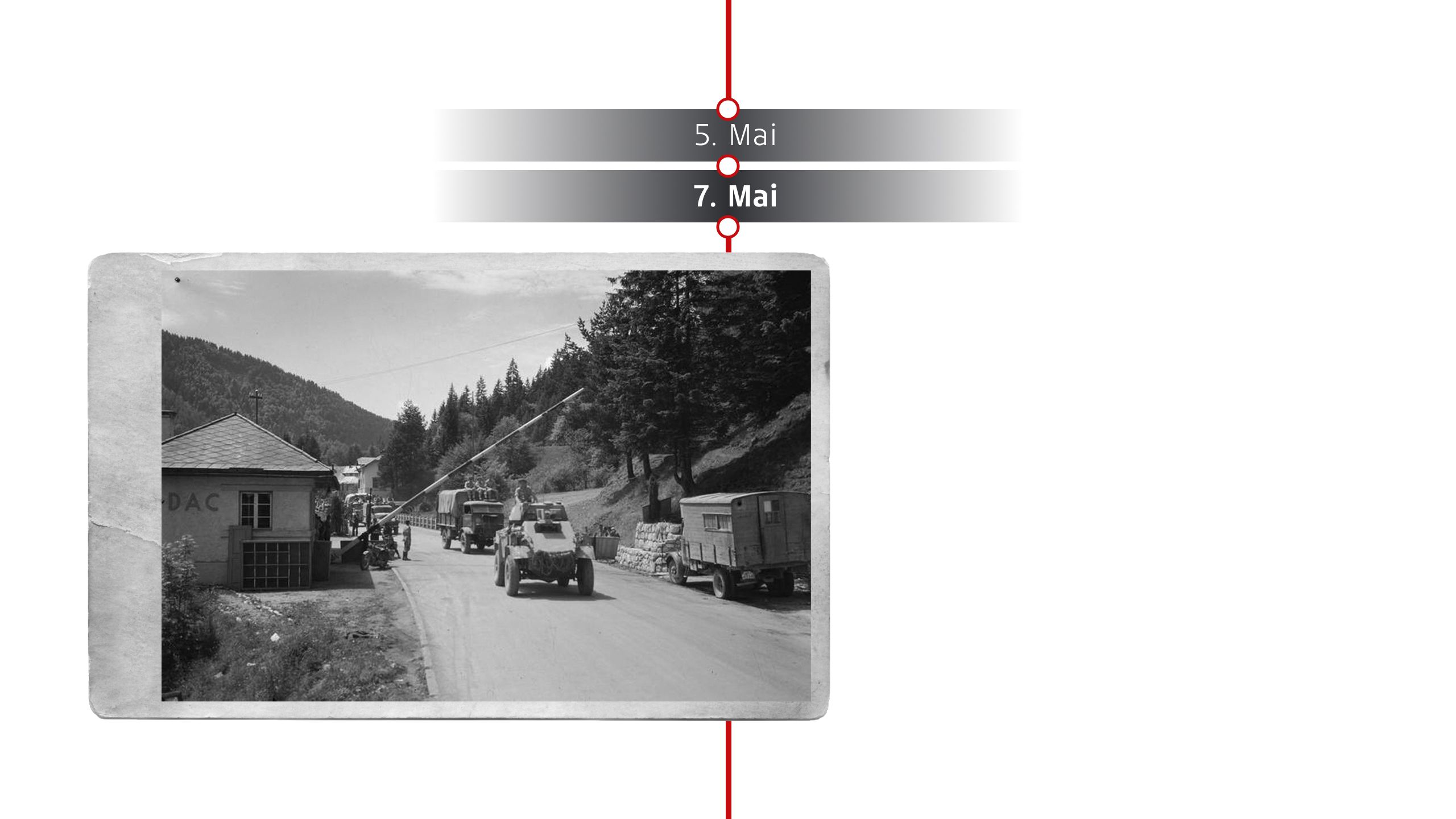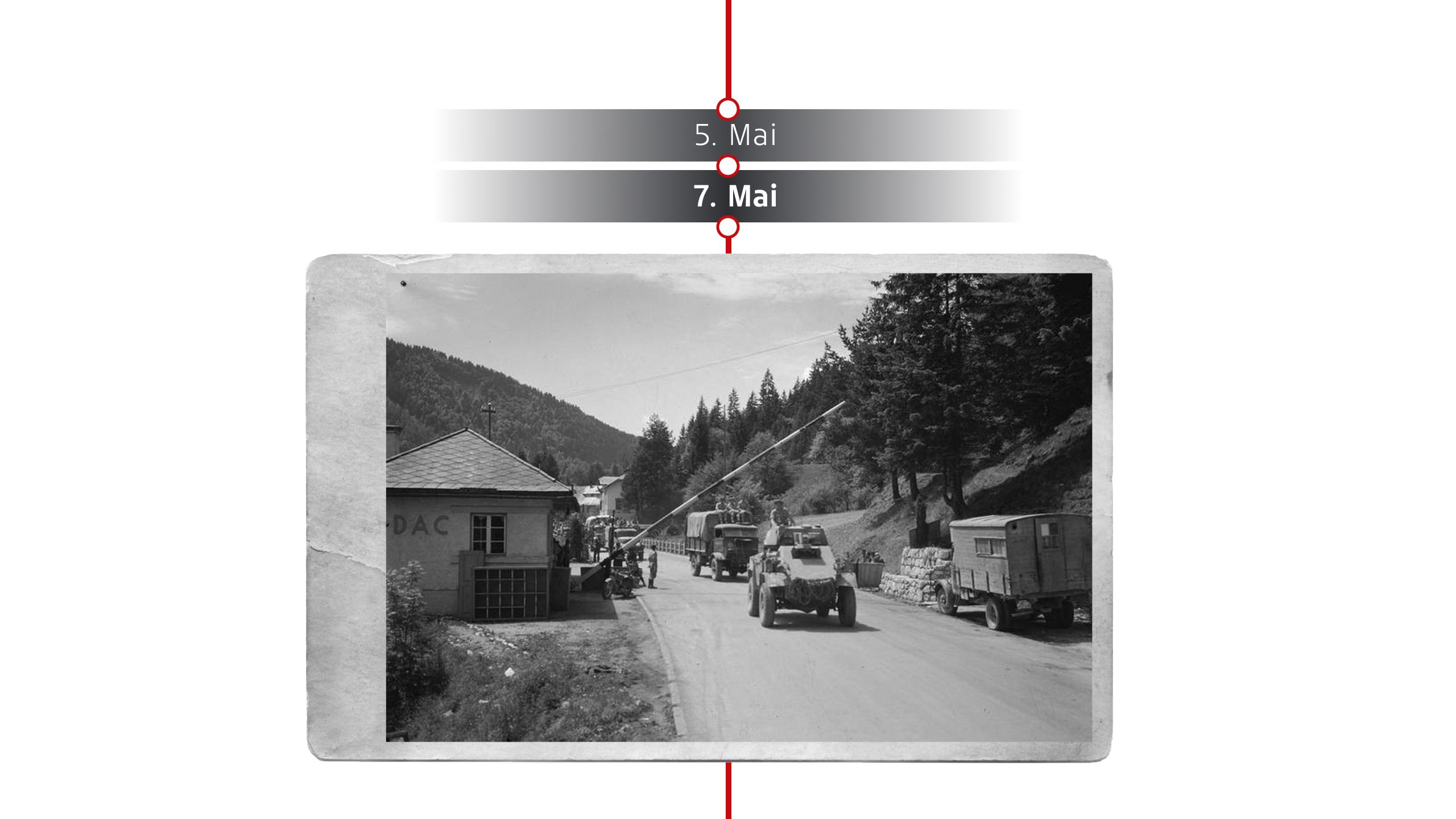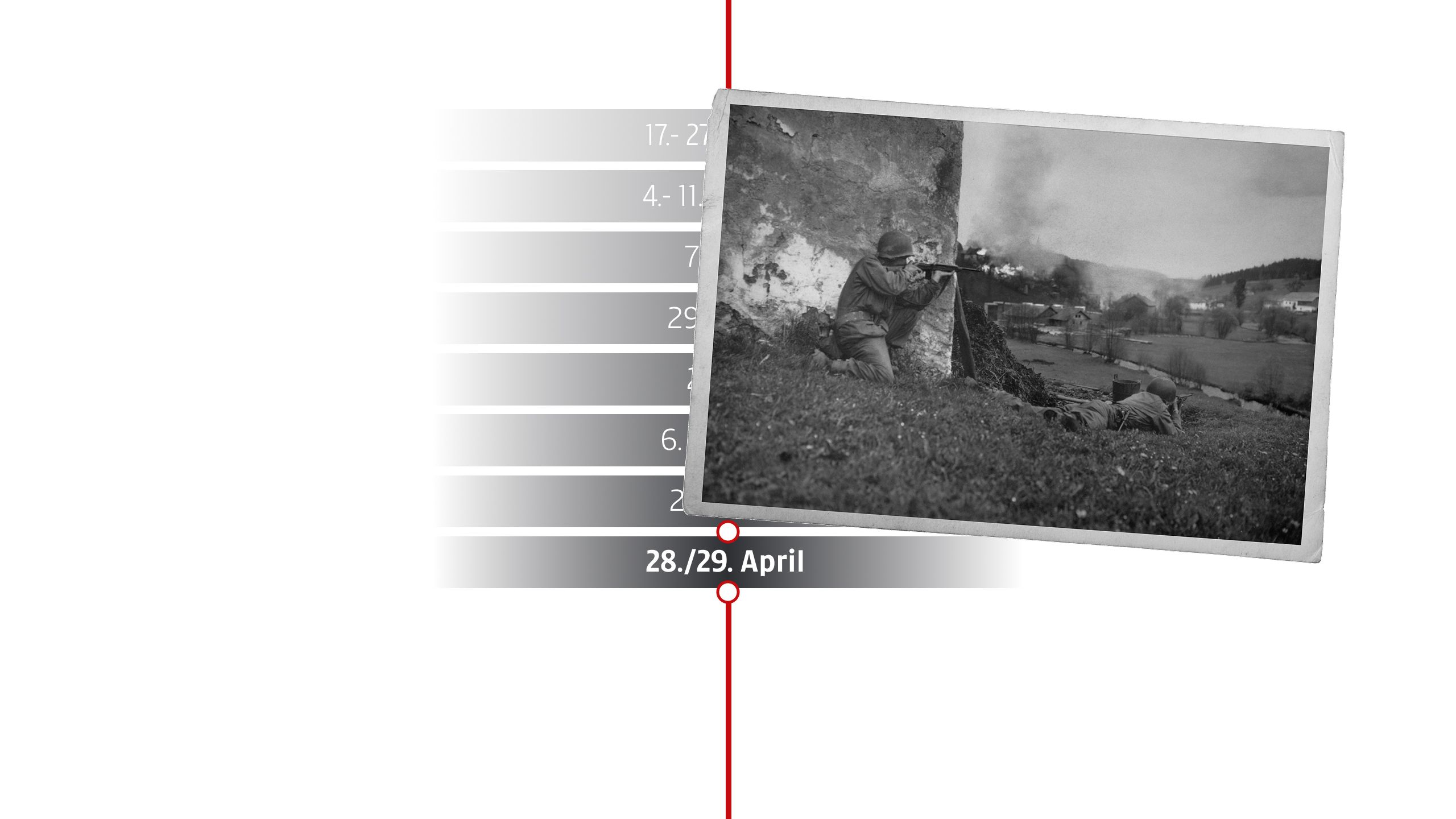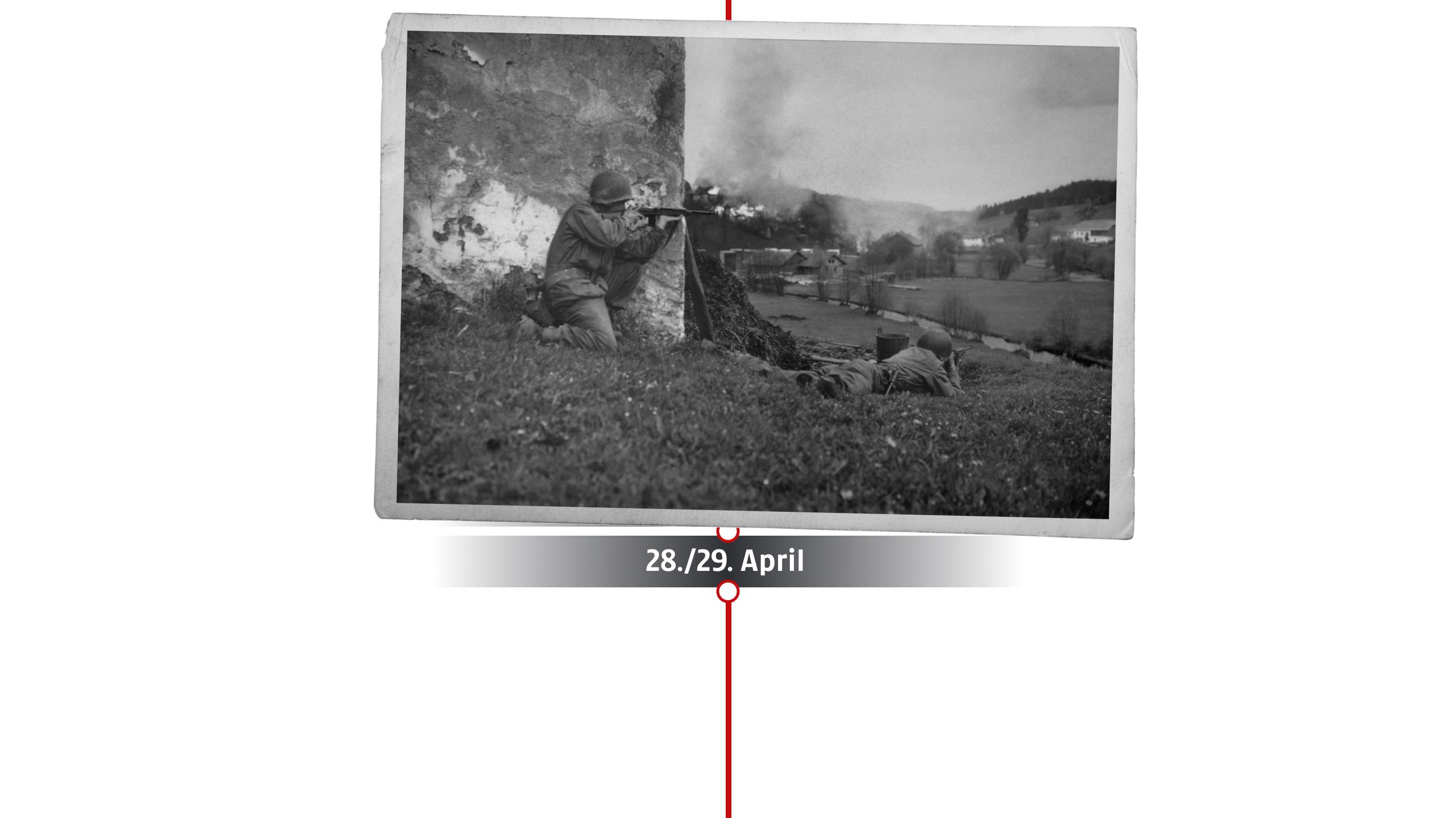 Am 28. April überschreiten französische Truppen bei Vorarlberg und Tirol erstmals die österreichische Grenze. Am 29. April rücken US-Truppen aus Bayern kommend in Oberösterreich ein – erste Einheiten erreichen den Raum um Braunau.