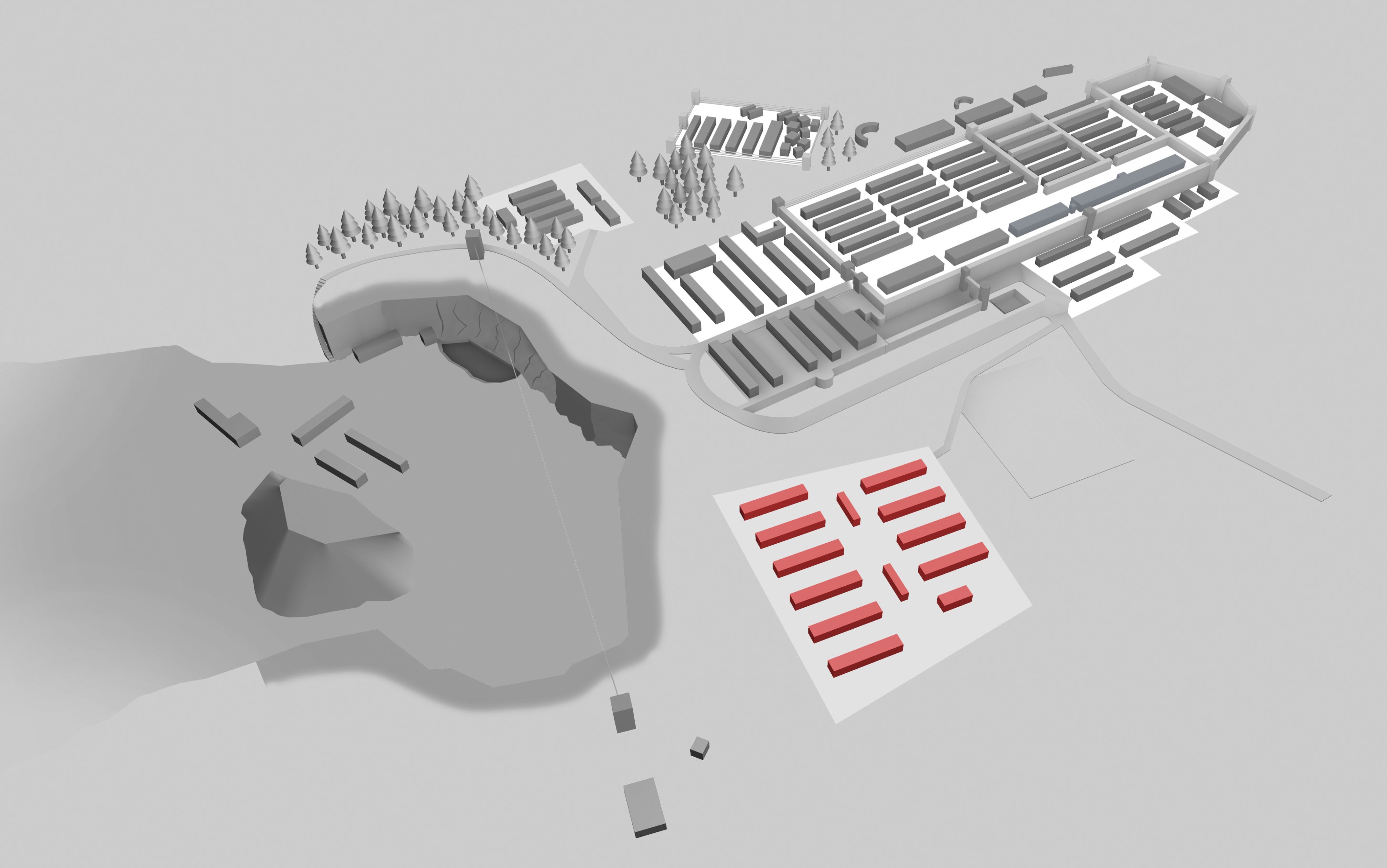 Die Unterkünfte der SS befanden sich außerhalb des Häftlingslagers und umfassten Kasernen, Verwaltungsgebäude und Erholungsbereiche. Hier lebten SS-Offiziere, Wachmannschaften und Lagerpersonal in relativem Komfort. Die Gebäude waren gut ausgestattet und boten Annehmlichkeiten wie eine Kantine, Sportplätze und ein Kasino. Während im Lager unmenschliche Bedingungen herrschten, führten viele SS-Angehörige ein privilegiertes Leben mit regelmäßigen Freizeitaktivitäten und Feiern.