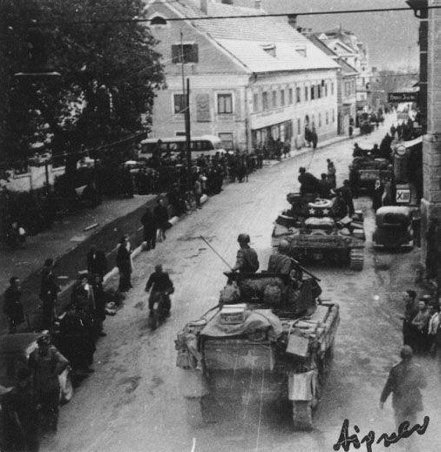 Truppenbewegung in Bruck/Mur beim Besatzerwechsel von Sowjets zu Briten