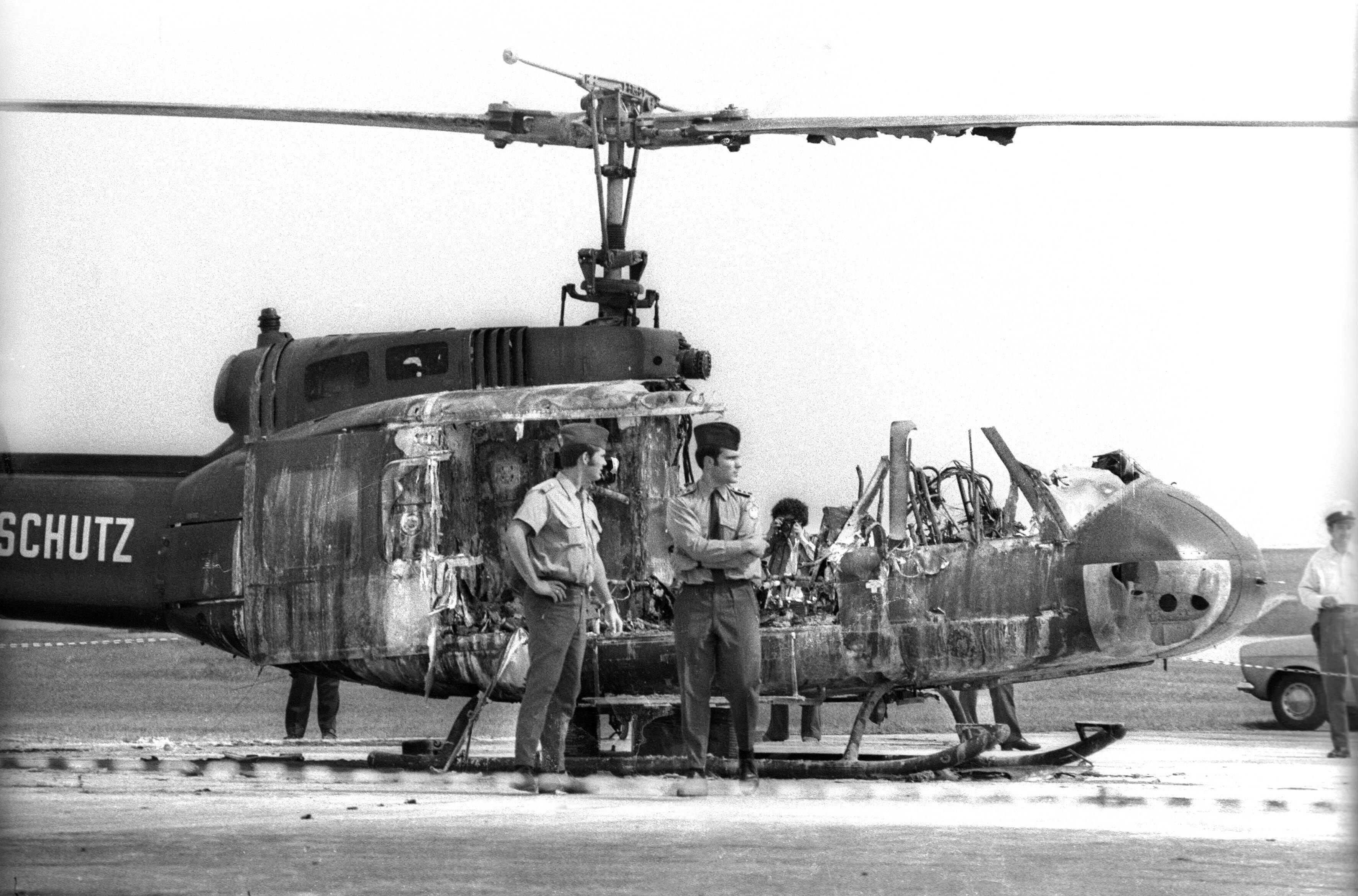 Die Helikopter landen. Mindestens vier Terroristen steigen aus. Zwei nehmen den nahen Passagierjet in Augenschein. Dort sollten sie von Polizisten in Lufthansa-Uniformen überwältigt werden. Aber die Beamten lehnen den Einsatz wegen des hohen Risikos kurzfristig ab. Die Terroristen erkennen beim Anblick der leeren Maschine die Falle. Scharfschützen erschießen nun vier Attentäter außerhalb der Hubschrauber. Unmittelbar darauf eröffnen die restlichen Terroristen das Feuer. Zwei Mitglieder der Hubschrauber-Besatzung werden verletzt, ein Polizist stirbt.