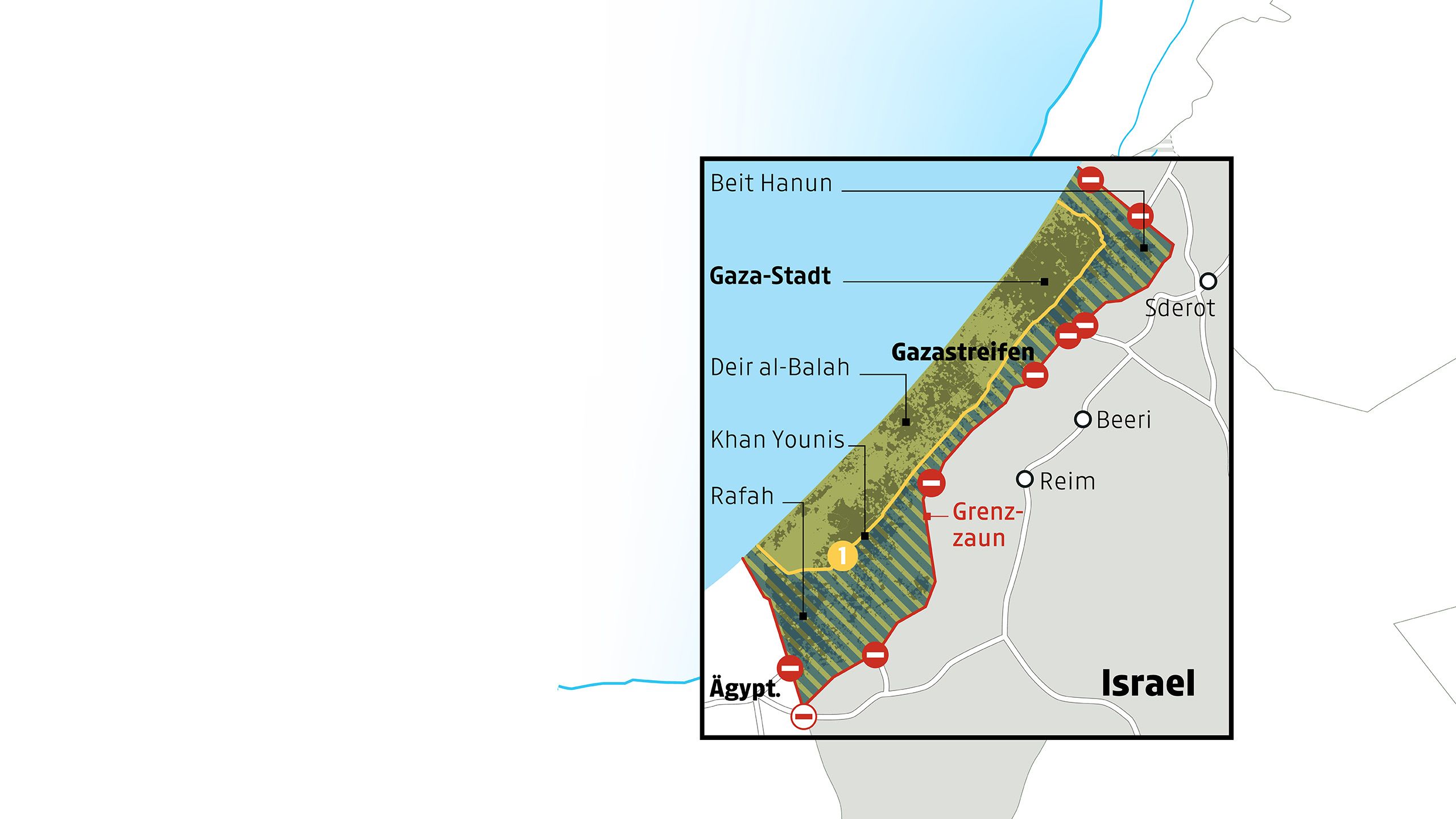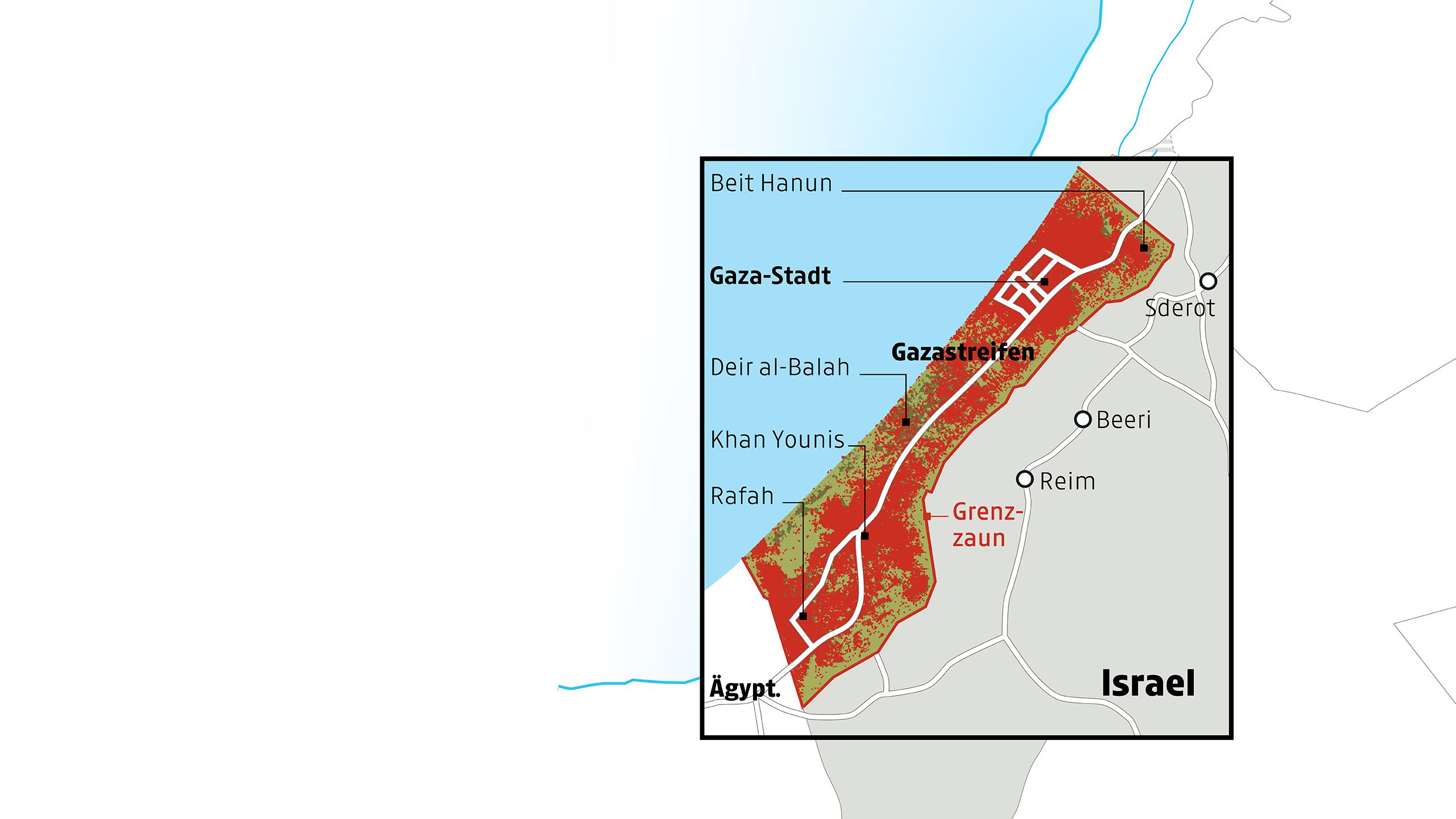 Kartenquellen: APA; Encyclopædia Britannica; AlJazeera, Library of Congress/Sami Hadawi (Reprod. Palestine Survey Maps); Margret Johannsen/PASSIA, Mideastweb; UN/UNOCHA; APA/peacenow.org.il; APA/dpa, ISW, CNN, NYTimes; APA/BBC, Wall Street Journal, Institute for the Study of War und AEI's Critical Threats Project; B'Tselem; The Washington Institute for Near East Policy; BBC/CUNY Graduate Center; Oregon State University; Le Monde; liveuamap.com, Weißes Haus.