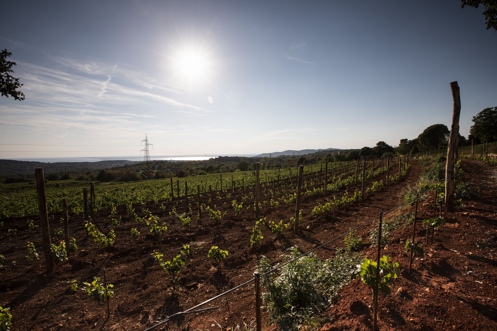 Blick vom Weingut Skerk in Prepotto auf der Karsthochebene gelegen, zum Meer. Foto: Francesco Zoppi.