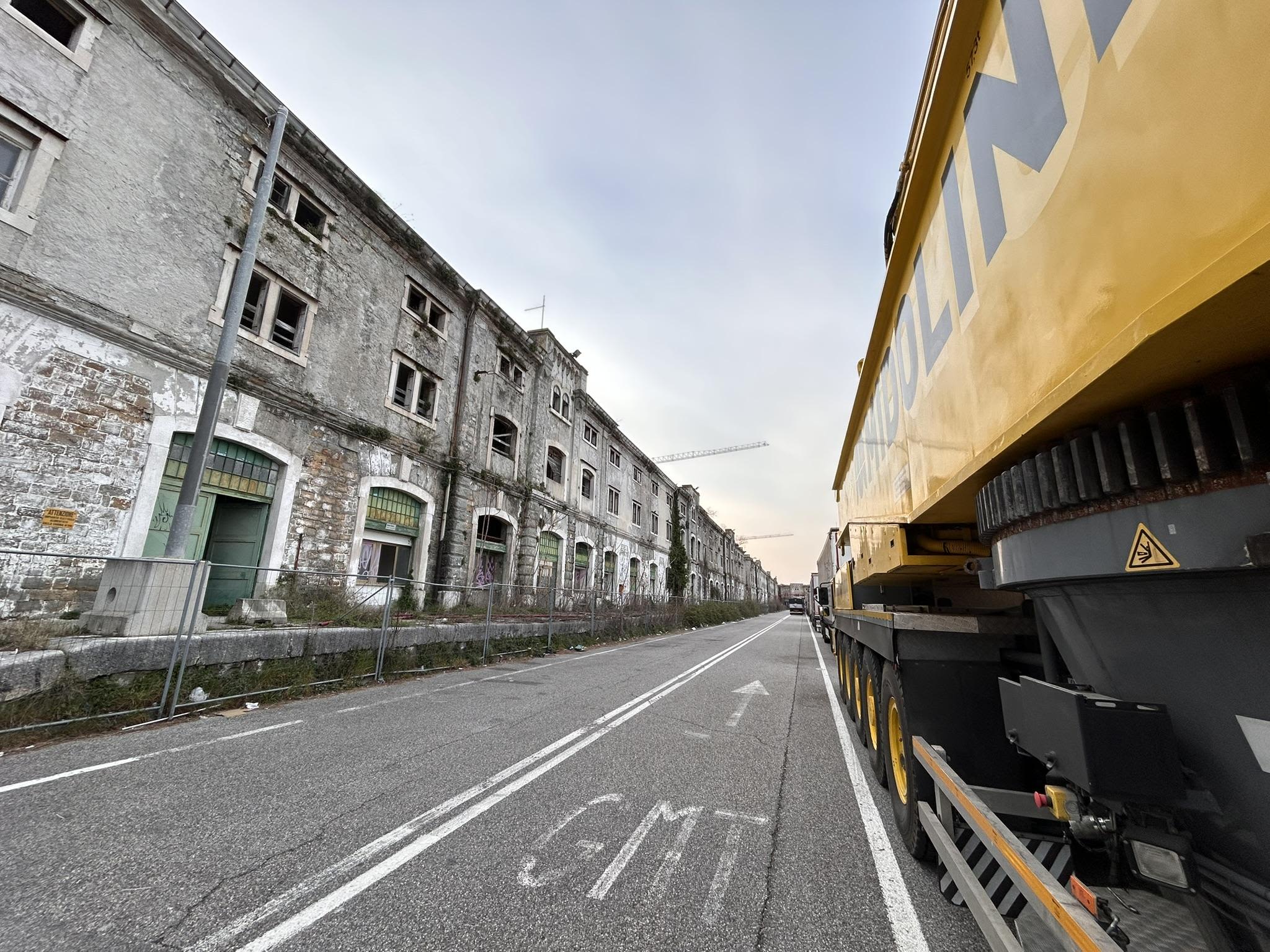 Der Industriekran „Ursus“ nach seinem unfreiwilligen Ausbruch aufs Meer wieder retour in Triest. Foto: Imago Images/zakaz86.