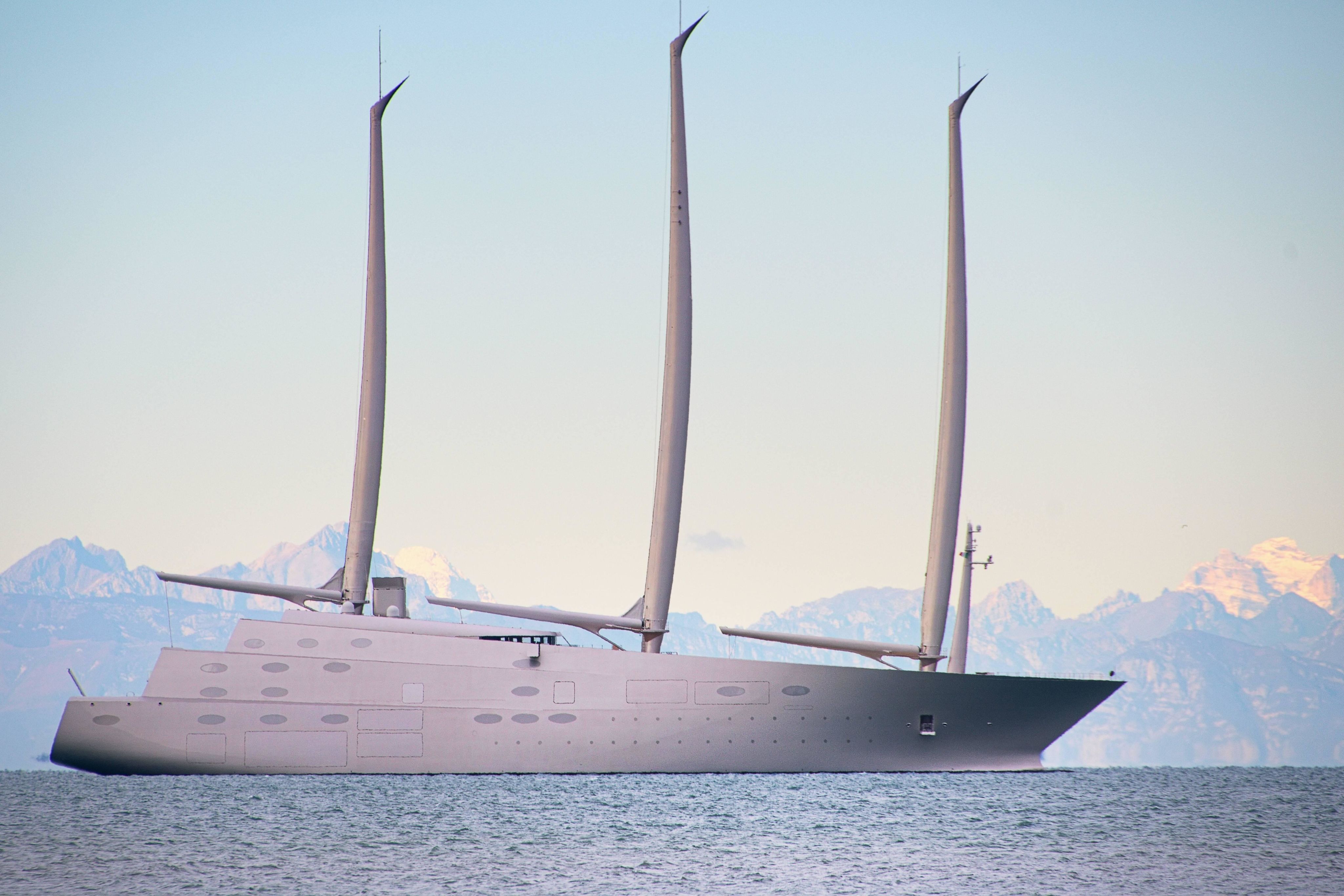 Die Oligarchen-Jacht „A“ liegt vor Triest und ist immer wieder im Hafenbereich sichtbar. Foto: Imago Images/Malina Petr