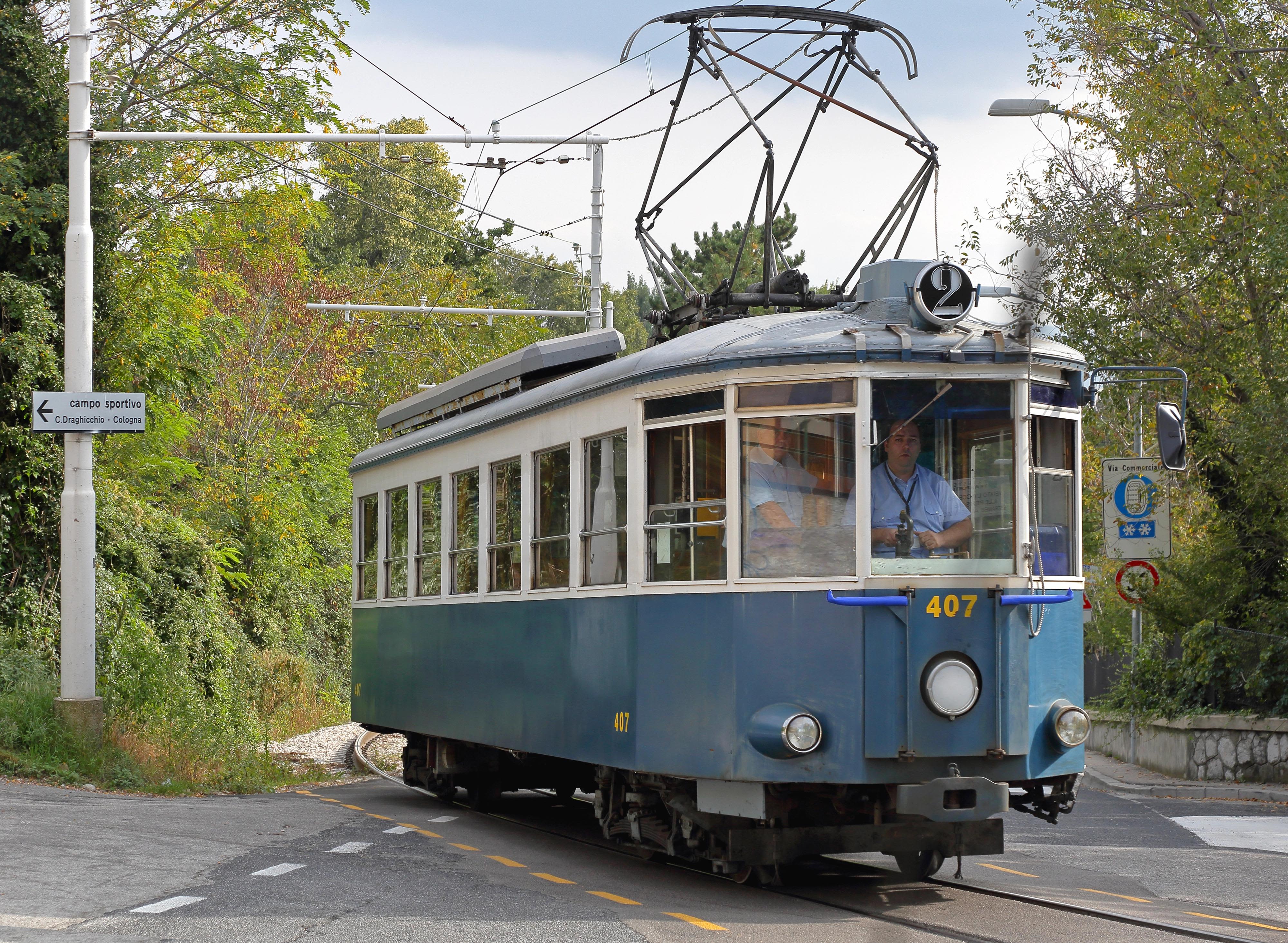 Überhaupt die Bora. Der rabiate und böige Wind an der östlichen Adriaküste hat Triest geprägt. Neben dem Triestiner Windmuseum widmet sich eine neue kleine Ausstellung, das „Borarium“, oberhalb der Stadt in der Ortschaft Opicina dem ständigen Begleiter. Der Sturmwind lässt die Menschen wie Betrunkene gehen und sorgt bei vielen Wettergeplagten für Kopfschmerzen, aber auch für klare Sicht der Küstenbewohner von Grado bis Piran auf die im Frühjahr noch verschneiten Alpen im Norden. Ein historisches Wahrzeichen verbindet das Triestiner Stadtzentrum mit Opicina.