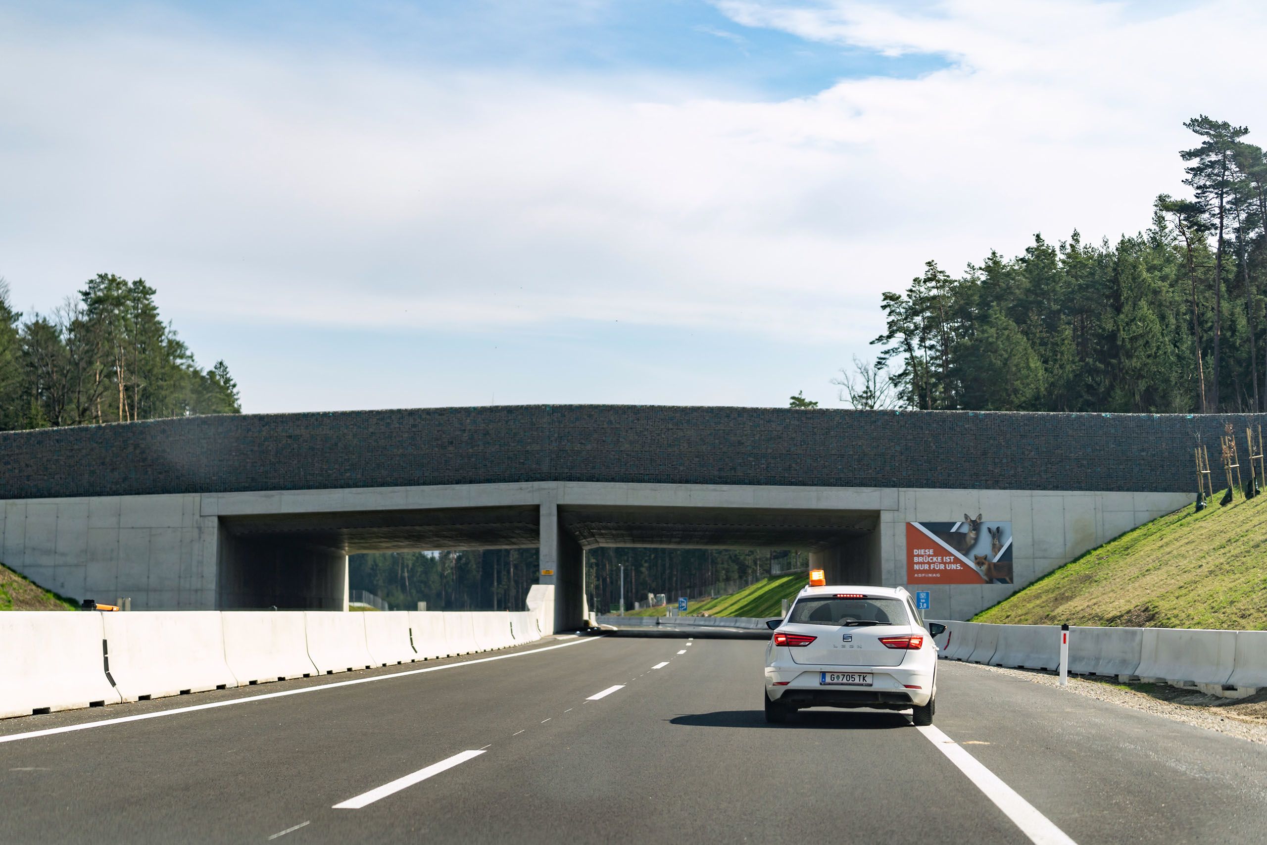 Neben den Ausgleichsflächen wurden auch Sicherheitsvorkehrungen für die Überquerung der Tiere getroffen. So führen zwei Wildbrücken über die Schnellstraße. Zudem erstrecken sich auf Höhe Speltenbach auch sogenannte Fledermausschutzwände. „Wir werden das wahrscheinlich sogar extra beschriften, damit sich die Menschen nicht wundern, warum mitten auf der Strecke nur vereinzelt Lärmschutzwände hochgezogen wurden“, erklärt Yvonne Monsberger, Projektleiterin. Diese signalisieren den Tieren, statt über die Straße darunter durch – durch die Fledermaustunnel – zu fliegen. Zudem wurde ein sogenanntes „Amphibienleitsystem“ entlang der Strecke errichtet, wodurch Frösche und Co nur schwer auf die Schnellstraße gelangen können.