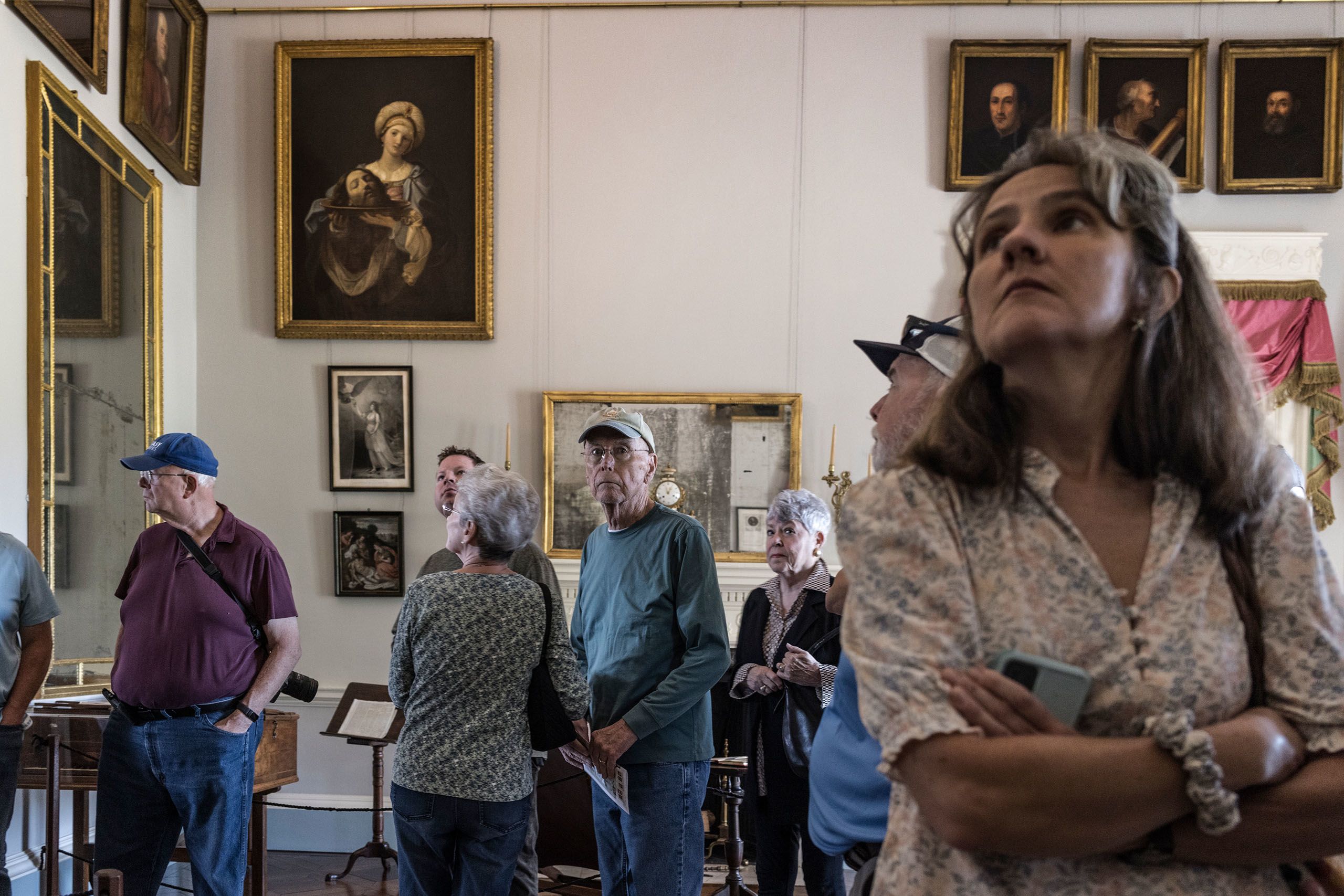 Unter Gaze-Zelten warten Gruppen von Touristen auf ihre Führung. „All men are created equal“ verkündet das T-Shirt eines Besuchers in riesigen Lettern. Das Haus im Stil des Renaissancearchitekten Andrea Palladio ist vollgeräumt. An den Wänden hängen Indianische Trophäen und Mastodon-Knochen von der großen Expedition, die Jefferson als Präsident (1801 bis 1809) in den wilden Westen geschickt hatte. Landkarten zeigen den enormen Landgewinn, den der Kauf Lousianas von Napoleon bedeutete. Im Nebenzimmer steht ein „Polygraph“, ein Schreibgerät, das die Federbewegungen des Autors mit einem komplexen Mechanismus auf ein zweites Papier überträgt. Jefferson wusste um seine Bedeutung, deshalb fertigte er Kopien seiner Schriften an.