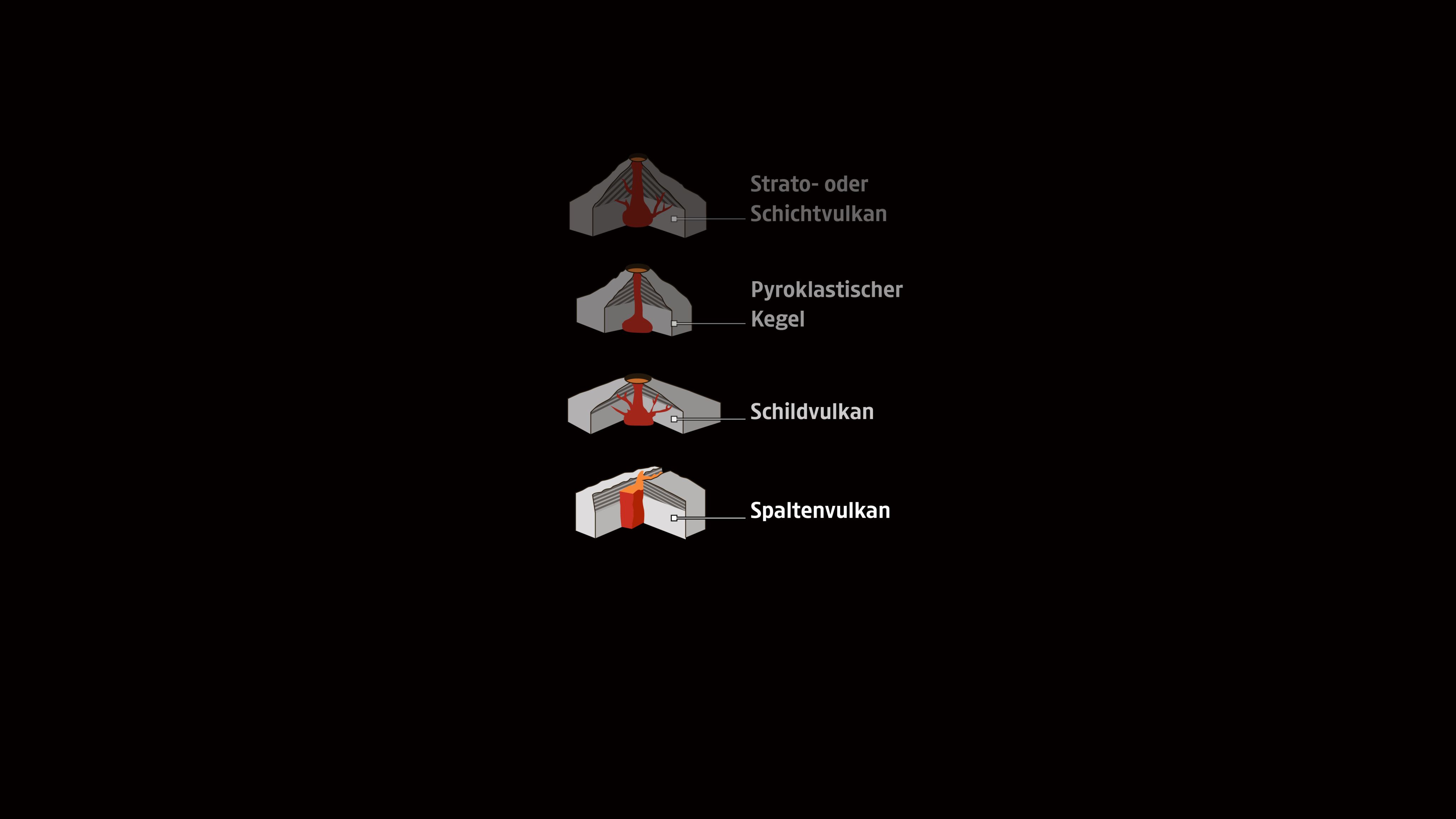 Anstatt aus einem zentralen, röhrenförmigen Schlot bricht die Lava bei Spaltenvulkanen aus einer oft kilometerlangen Spalte hervor.