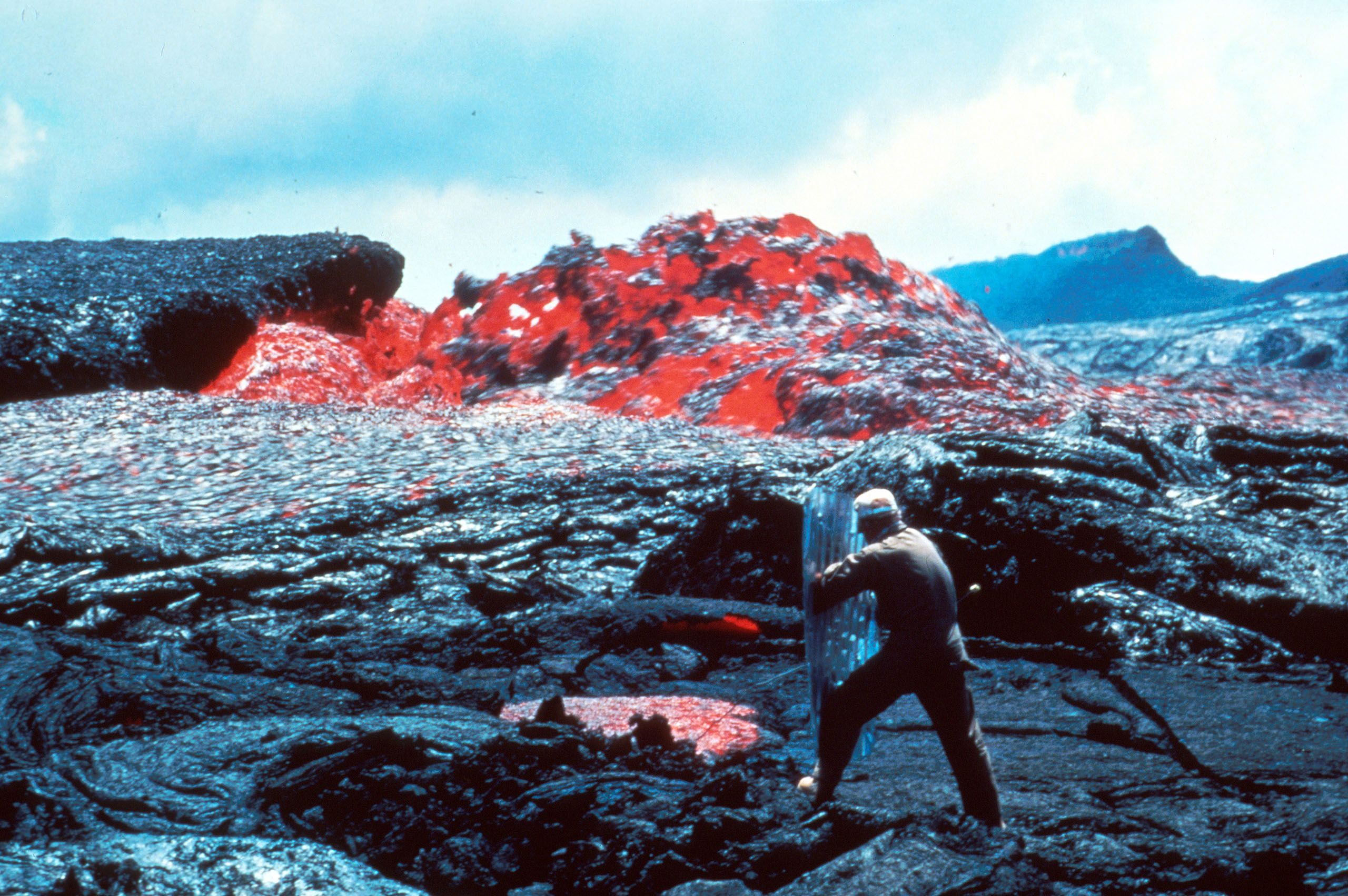 US-Geologe Edward Wolfe bei Messungen am Kīlauea auf Hawaii, 1984.