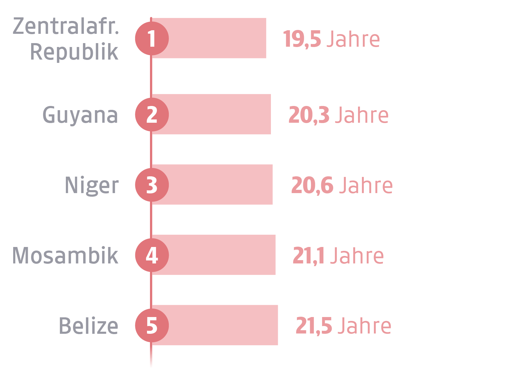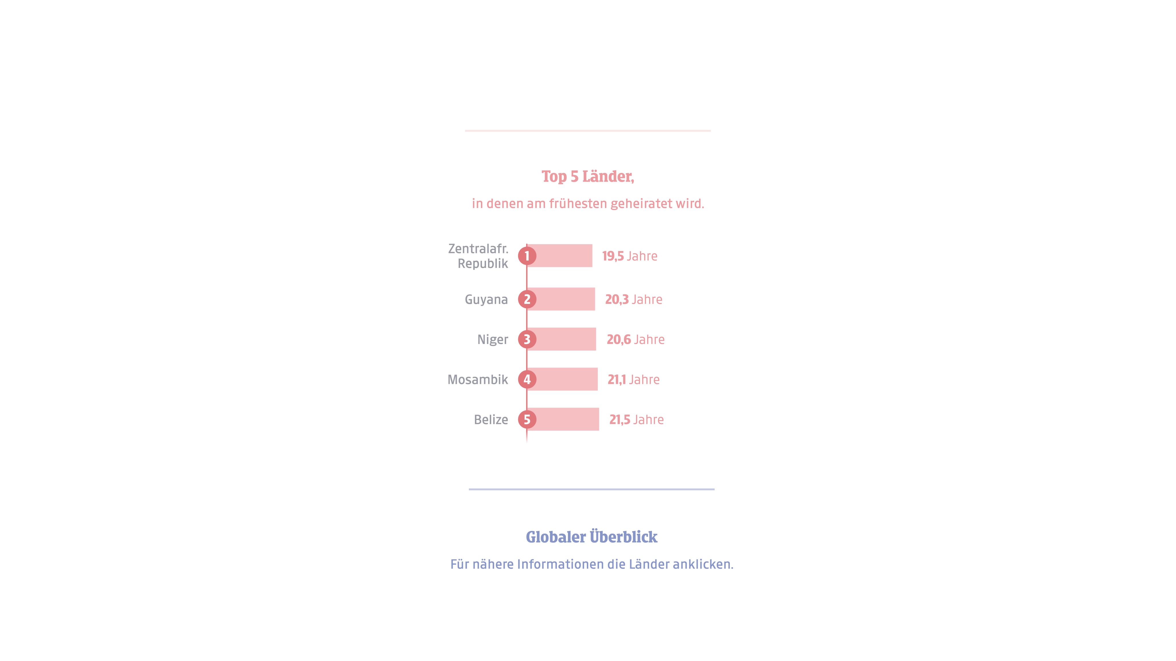 In welchem Alter weltweit zum ersten Mal der Bund fürs Leben eingegangen wird.