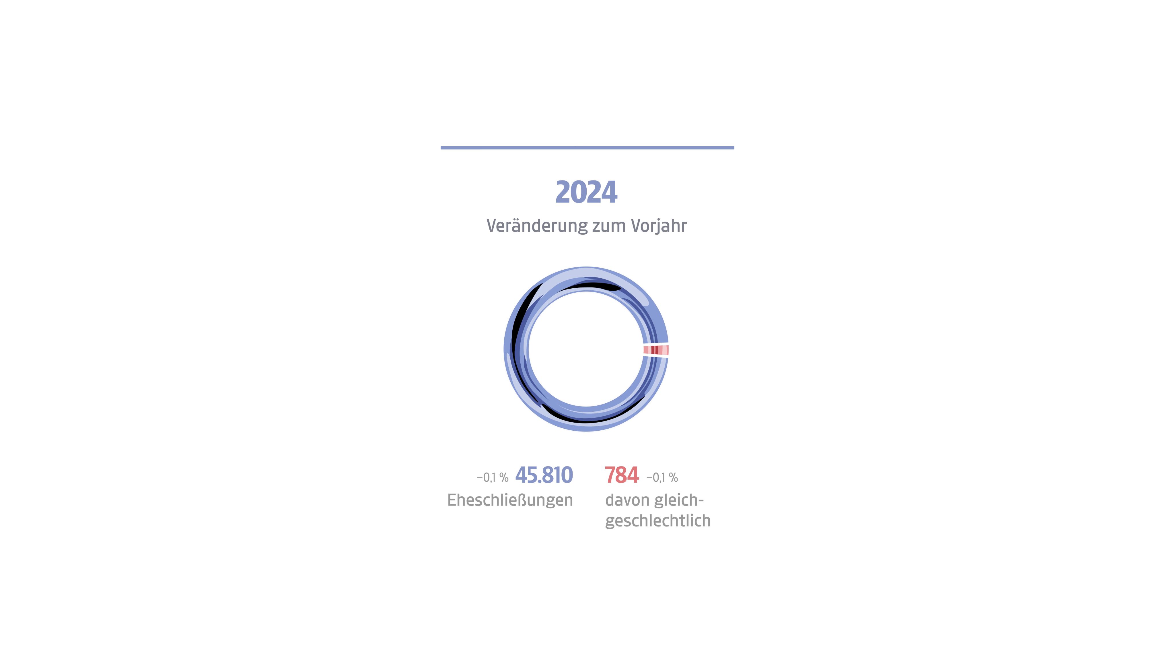 der Österreicher und Österreicherinnen haben bereits einmal geheiratet. 44 Prozent waren im Jahr 2024 verheiratet.