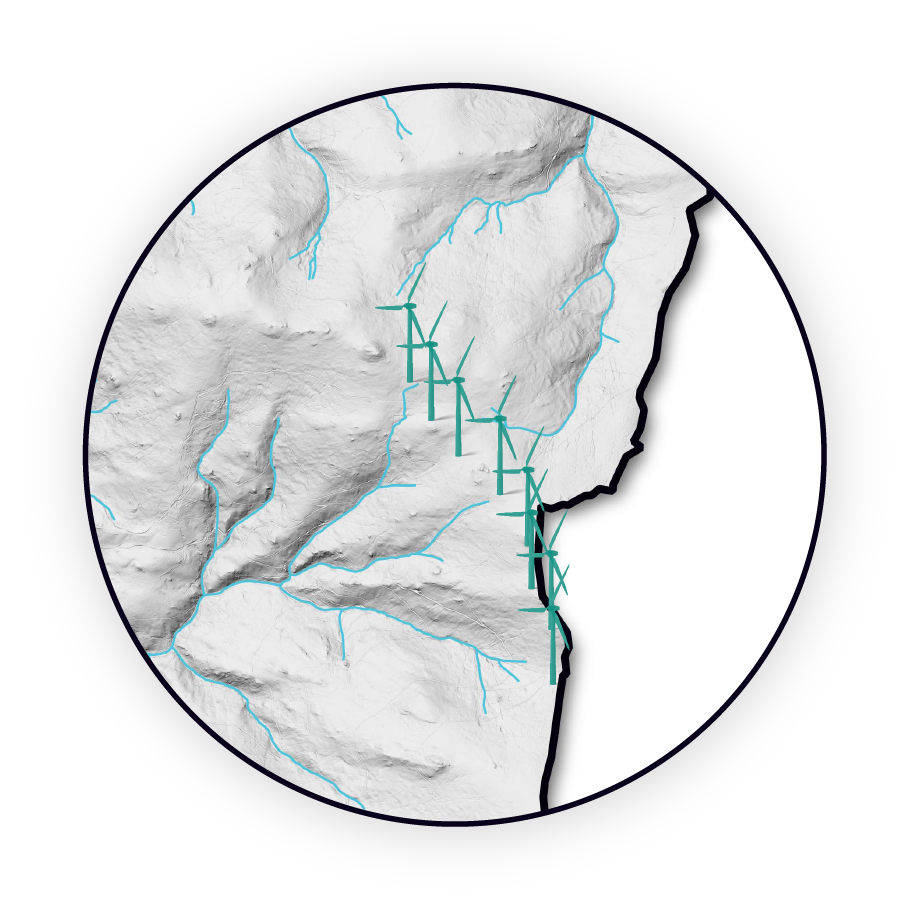 Diese Illustration zeigt Onshore-Anlagen an Land.